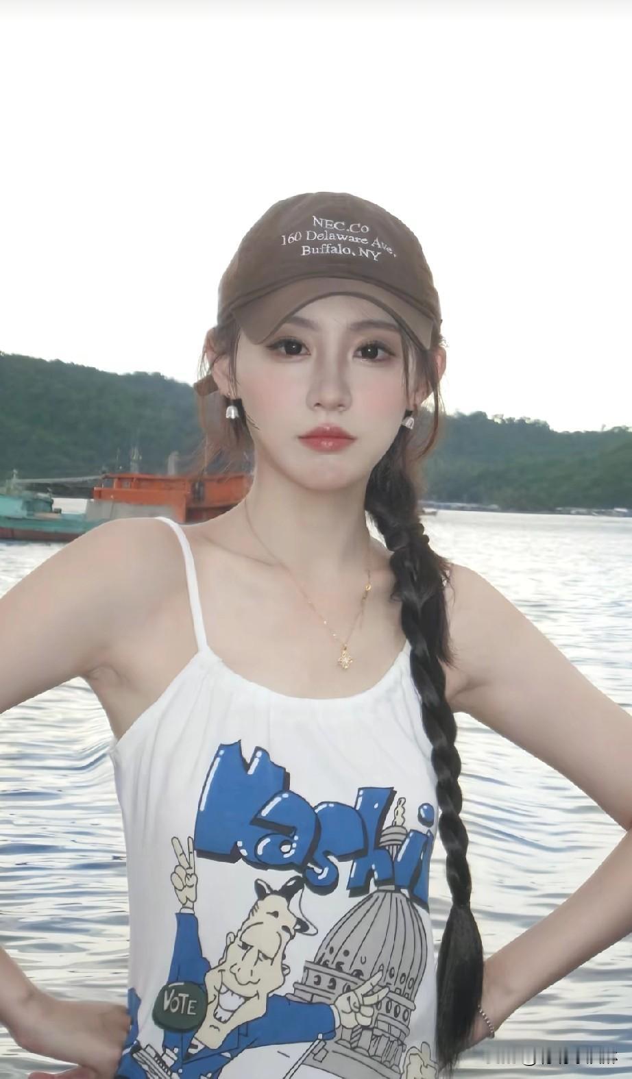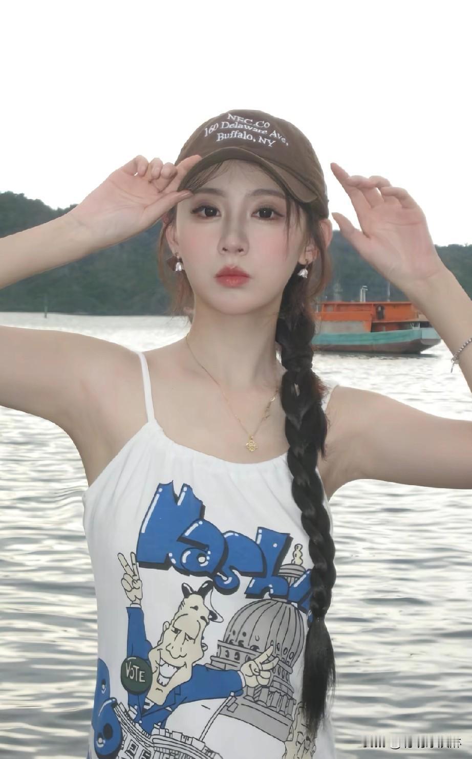 黑白条纹的清新夏日穿搭,搭配自然背景,轻松自在。