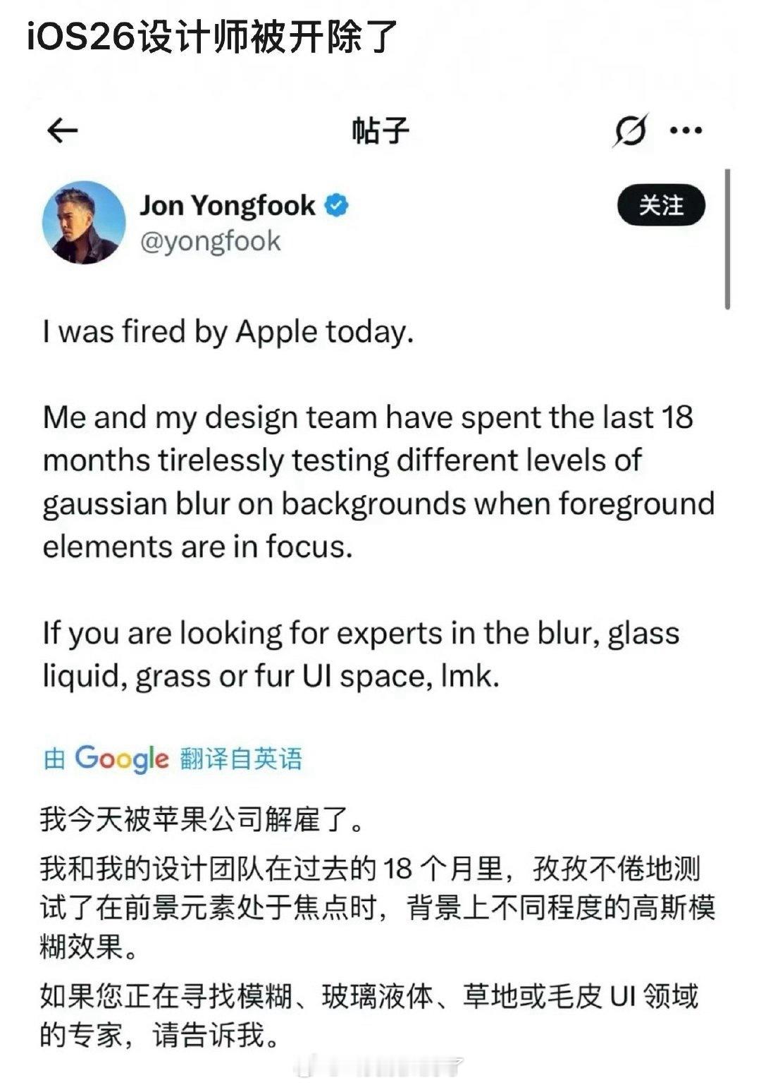 苹果IOS26的UI设计师被开除了!很多人都骂26这个系统丑哎。