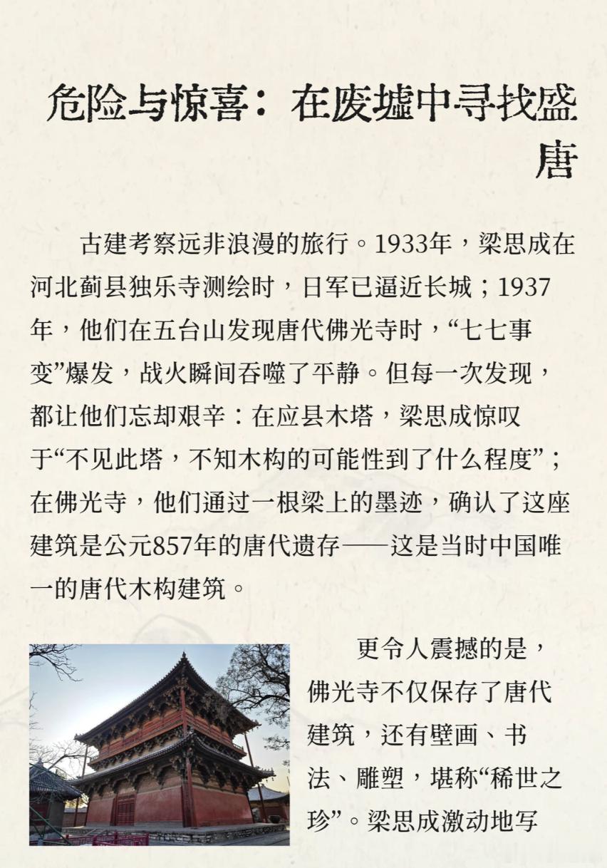 千年前的女性意识有多超前 跨越时空的视角、光芒万丈的女性力量、高度还原的服化道...佛光寺这段 “千年女性对话” 质感满满。1937年林徽因在佛光寺,打破了日本学者“中国已无唐代木构建筑”的断言。曾有网友问,为什么宣传林徽因的文章、视频很多?或许是因为她值得,宁公遇创造了奇迹,而林徽因托住了“将坠”的盛唐。