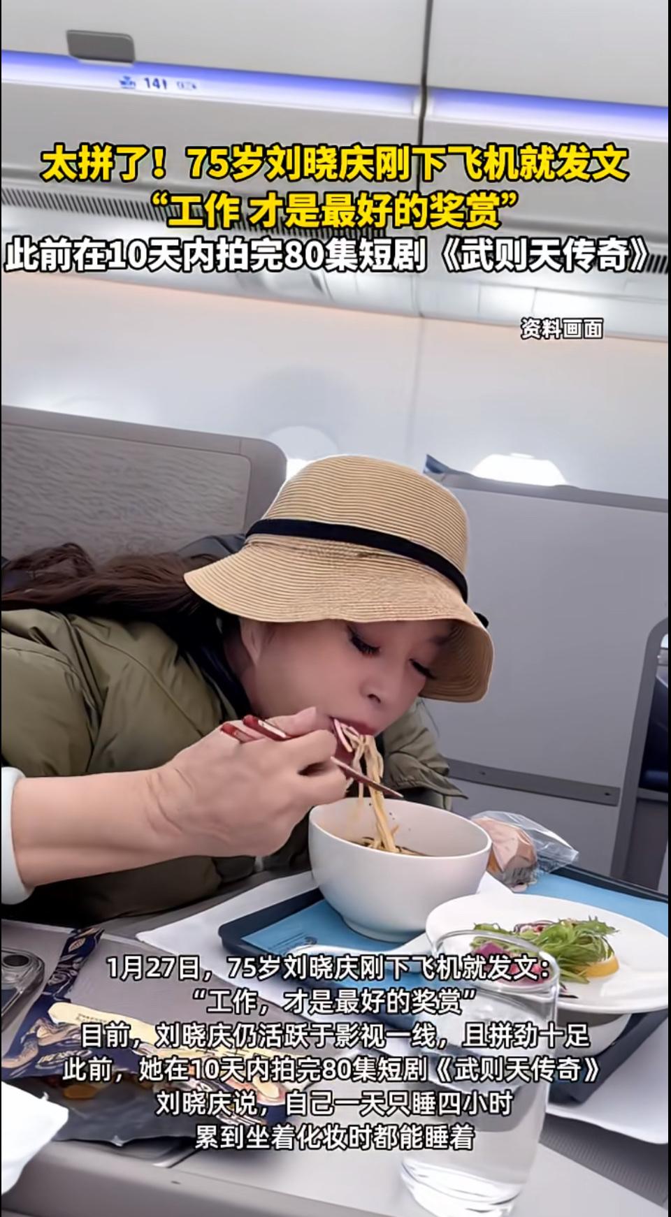 工作狂奶奶在飞机上吃面。这画面乍一听还挺新奇,工作起来像个永动机的奶奶,怎么会在飞机上悠哉地吃面呢? 原来,这次奶奶是去外地谈一个重要的合作项目。在候机的时候她还在和团队成员开视频会议,反复敲定细节,整个人全神贯注。登上飞机后,奶奶紧绷的弦稍微松了松。飞机餐发下来,里面居然有一碗热气腾腾的面。 奶奶看着这碗面,眼里闪过一丝笑意。她稳稳地拿起筷子,轻轻挑起一些面条,吹了吹,然后送进嘴里。那模样,一点也没有工作时的风风火火。她慢慢咀嚼着,脸上流露出满足的神情。 旁边坐着一位年轻人,好奇地看着奶奶,忍不住搭话:“阿姨,您看着工作应该挺忙的,还能这么悠闲地吃碗面。”奶奶笑着说:“工作再忙,这饭也得好好吃,身体可是革命的本钱。而且啊,在飞机上吃这碗面,就当是忙里偷闲啦。” 吃完面,奶奶又精神抖擞起来,拿出资料开始为到达目的地后的工作做最后的准备。她就像一颗永远充满能量的星星,在工作的宇宙里不停闪耀。