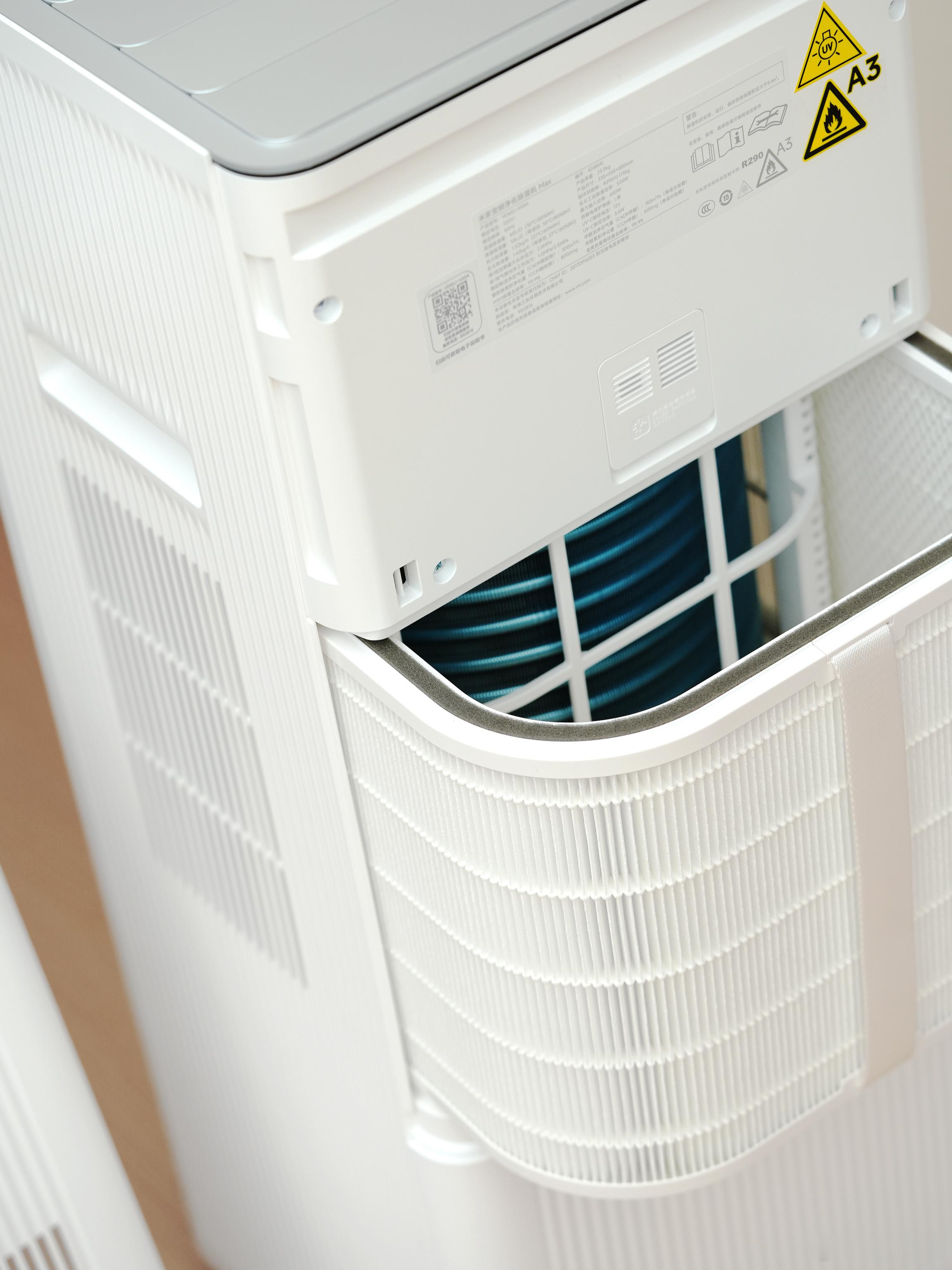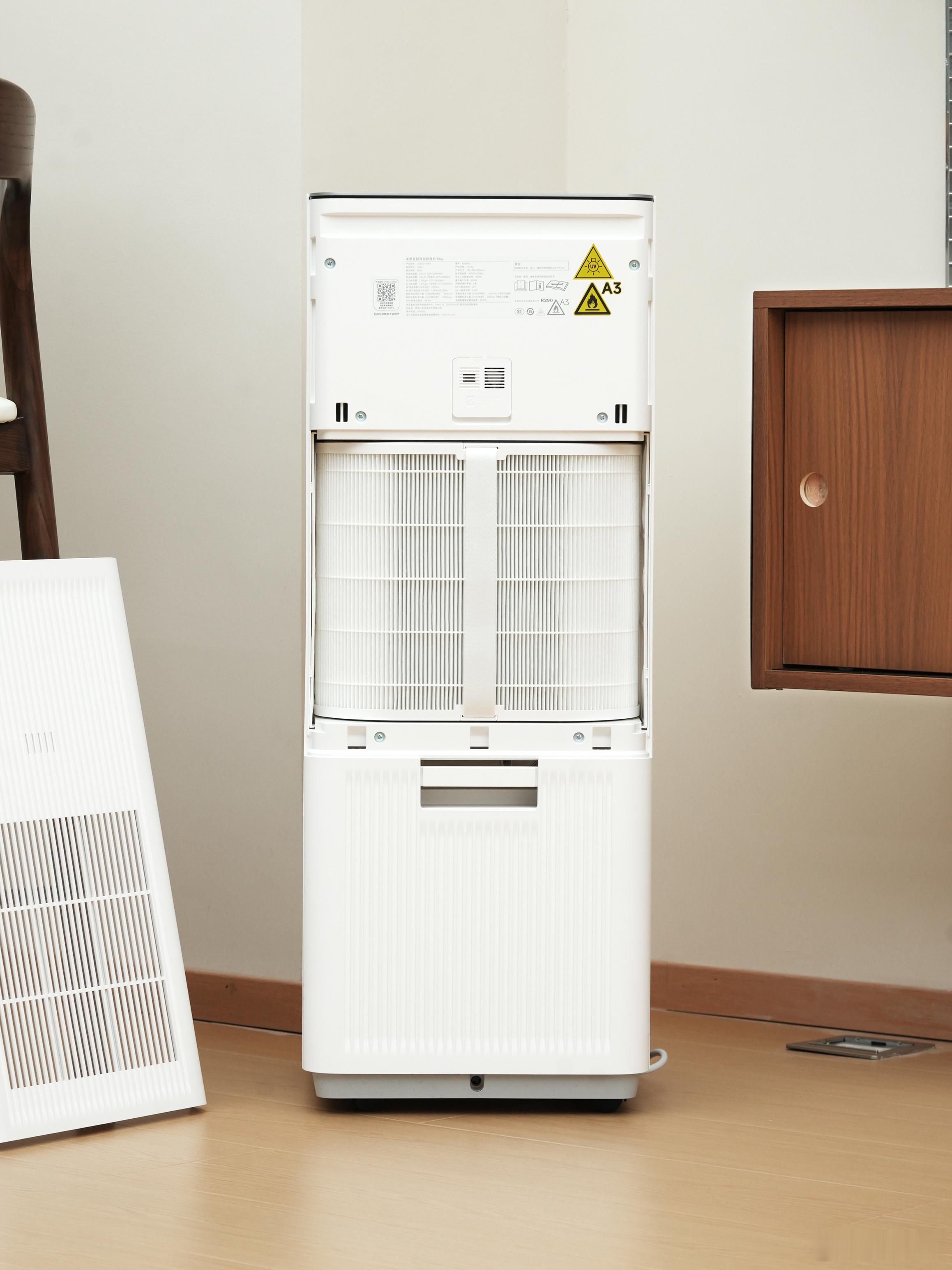 米家变频净化除湿机Max顾名思义就是同时支持除湿和空气净化,而且是全变频系统会更加节能好多产品都是什么都想要但什么都做不好,不过小米净化除湿一体机做得还不错。它搭载了高端双转子变频压缩机,除湿量非常高60升/天,7分钟就可以速干一间卧室。单间除湿面积120m²,意思就是正常家里放一个就差不多了,足够覆盖全家。我们这里冬天本来就比较干燥,浅浅尝试了一下,很干!如果你们那里比较潮湿真的可以考虑同时它也可以净化空气,用的是这样U型的滤芯,合理利用机器内部空间,可以净化甲醛、细菌、过敏源、PM2.5等等。两种模式“净化除醛”和“净化除湿”,不用除湿的时候就打开净化除醛,那它就是个一年四季都能用的空气净化器了一台机器可以解决两个问题,如果你买两个机器放在家里还要占地方,米家变频净化除湿机 Max,非常方便的产品小米除湿机