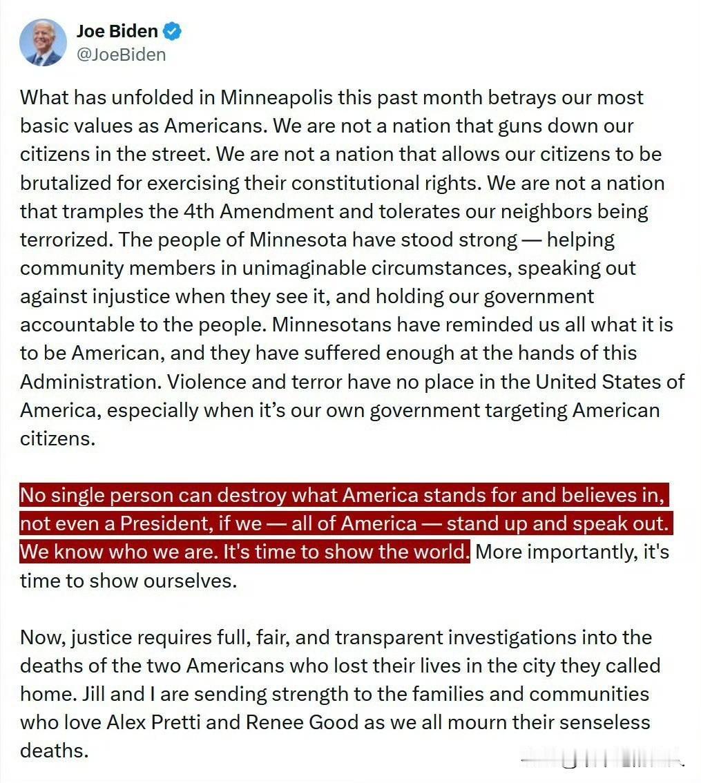 哈哈[捂脸] 拜登发声了,看来拜登想念美国人民了,人民开始怀念拜登时代了?这么大年纪了还出来发话,不容易啊。