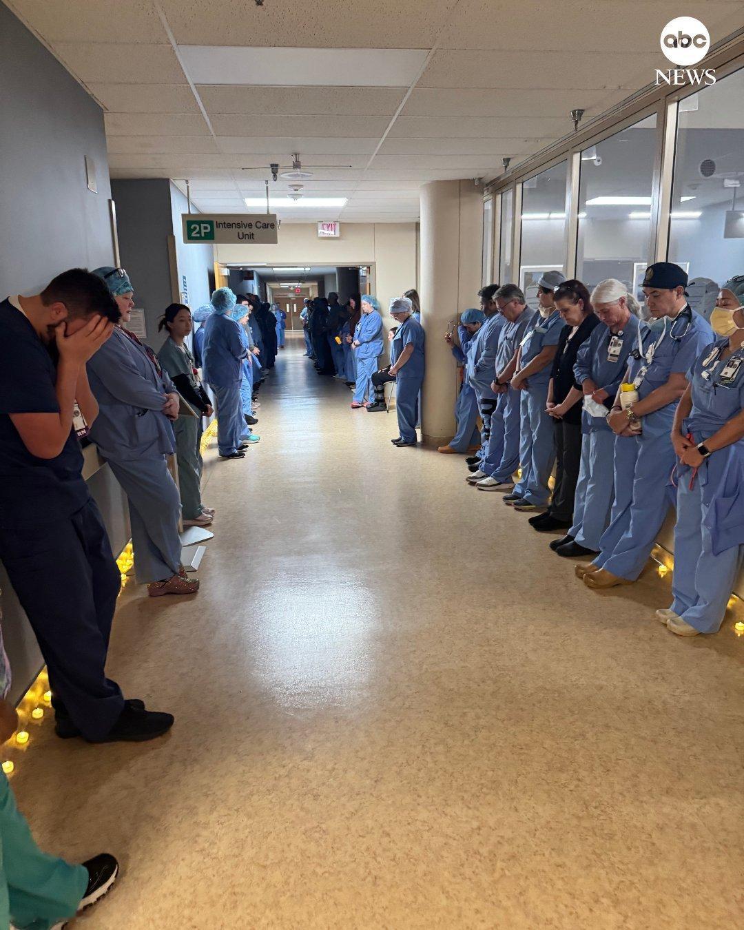 在亚历克斯·普雷蒂生前工作的明尼阿波利斯退伍军人医疗中心拍摄的照片显示,周一,医护人员为悼念这位已故同事默哀。图五,资料照片Pretti 帮助退伍老兵康复。