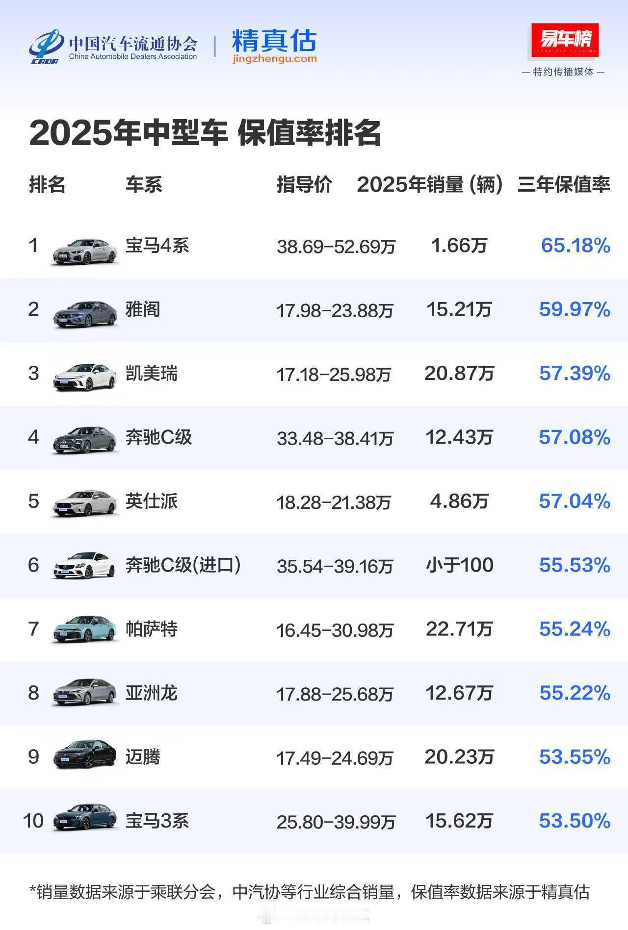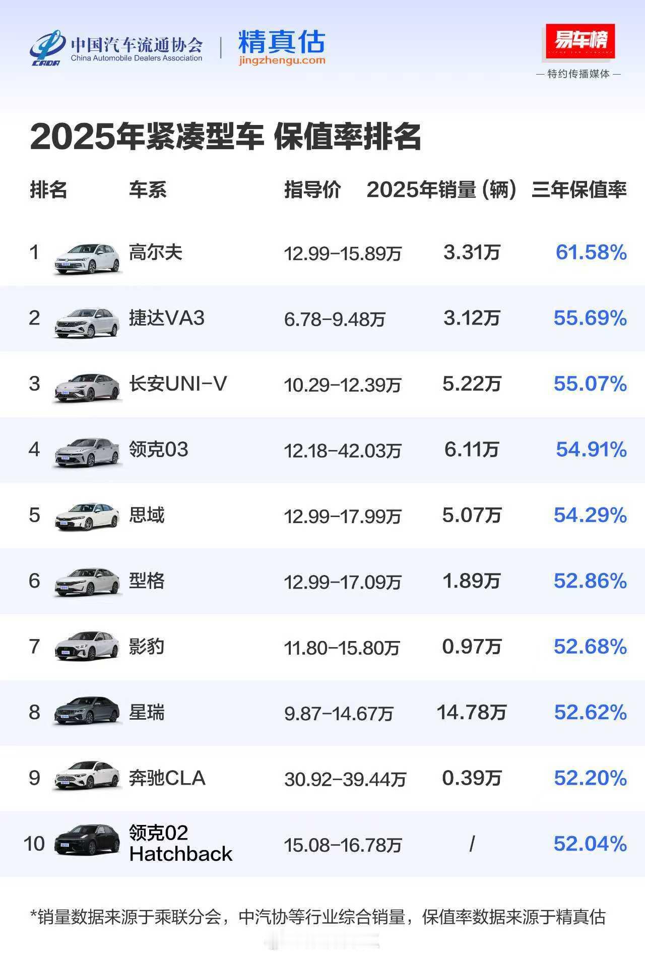 易车发布的汽车保值率排行。 上面有你的车吗? 估算数据和你实际体感一致吗?保值率