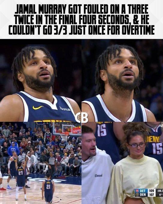 2.8秒,裁判敢吹出2个三分犯规? 掘金对阵活塞,最后时刻的判罚,简直让人大开