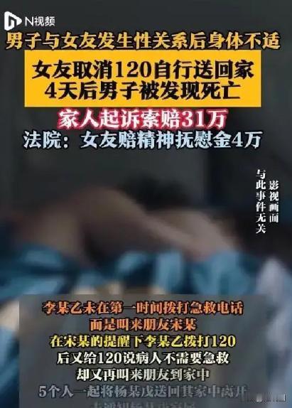 山西太原,杨某一大早就赶往女友李某家中,和对方发生了男女关系。后来杨某身体不适,意识逐渐模糊,李某却没有拨打120,而是叫来了朋友宋某,宋某劝她还是拨打120好,不过李某拨打后又回电说不用了,转而又喊了另外三个朋友来,五个人一起把杨某送到了他的家中。离开时,李某并未告知杨某的四个子女相关情况,直到四天后,杨某的儿子上门看望时,才发现父亲躺在床上离世。最后,杨某的子女直接起诉李某和另外四个人,要求赔偿31万余元。 清晨的阳光透过窗帘的缝隙洒进屋子,照在李某那略显凌乱的小厨房里,她手里捧着一个盘子,里面是刚煎好的鸡蛋、烤得微焦的吐司和一小碗热乎乎的稀饭。 她拿起手机,拨通了杨大爷的号码,声音里带着明显的甜意和撒娇,“杨哥,你赶紧过来,趁热吃啊,我特意早起给你做的早餐。” 电话那头,杨大爷沉默了一会儿,最后轻轻嗯了一声,仿佛回应了李某的热情,也透出一丝倦意。 杨大爷走到李某家里,屋子里弥漫着早餐的香气,他坐在床边,伸手按了按胸口,“我心脏有点不舒服……” 声音低沉而沙哑。李某心里一紧,忙搀扶他躺在床上,又给他盖好薄毯子。杨大爷脸色渐渐发白,额头上渗出细密的汗珠,双手微微颤抖。 李某慌了,她的心里一边担心杨大爷的身体,一边又顾忌两人尚未公开的关系——如果邻居们看到救护车开到楼下,会不会传出去?她的小心思像藤蔓一样在脑子里缠绕,让她不知如何抉择。 她赶紧拨通朋友宋某的电话,声音有些颤抖:“宋哥,咋办啊,杨哥这样躺在我家里,我都慌了,万一出事……你说……要是传出去,我俩都这个年纪了……” 电话那头,宋某语气干脆而直接:“别说别的了,赶紧叫120吧,你得让专业的人来看。” 李某听了,只能点头答应。她慌乱地拿起电话拨打了急救电话,报了地址和症状。挂掉电话的那一刻,杨大爷慢慢舒展了身体,颜色也渐渐恢复,甚至可以坐起来了。 李某看着他脸色缓和,心里松了一口气,但同时那点小小的虚荣和怕人知道的心理又占了上风——如果真叫了救护车,下楼的邻居们会看到,万一有人议论纷纷,自己难免要被指指点点。 短暂的犹豫后,李某做出了一个极具争议的决定。她回拨了急救电话,告诉值班医生:“没事了,人自己好了。” 声音里带着一丝镇定,仿佛这样就能平息所有可能的麻烦。挂掉电话后,她又赶紧打电话给另外三位朋友,让他们帮忙把杨大爷送回家。 五个人小心翼翼地抬着杨大爷,尽量避免发出声响,不让楼下的邻居察觉半分异常。 一路上,杨大爷的身体依旧显得虚弱,四个朋友紧紧搀扶,步伐小心翼翼。李某在旁边提醒:“慢点,别碰到楼梯的扶手,小心摔着。” 每走一步,她心里都有些紧张,但更多的是对别人目光的忌惮和怕自己成为闲话对象的担忧。她甚至在心里盘算着,如果杨大爷真的出事,自己该如何面对家属和社会舆论。 把杨大爷送回家后,李某和朋友们简单整理了现场,确认他平躺在床上安静无恙。 李某离开时,并没有通知杨大爷的四个子女,心里想着,也许过几天情况会好转,他们就不会察觉。她转身离开时,带着几分轻松,仿佛一切都在掌控之中,但这种轻松只是暂时的。 四天后,杨大爷的儿子按约定来探望父亲。当他推开家门,看见父亲静静地躺在床上,再也没有起身迎接他,房间里弥漫着一股令人心悸的静默。 他急忙检查父亲,发现一切都已经晚了。震惊、悲痛、愤怒,种种情绪交织在一起,让这个家庭一时间无法承受。 杨大爷的子女无法接受父亲在毫无警告的情况下离世,更无法原谅李某等人的处理方式——如果当初及时叫了救护车,也许一切都能不同。 于是,他们向法院提起诉讼,要求李某和另外四位朋友承担民事赔偿责任,共计31万余元。 诉状中详细描述了李某等人的行为,包括延误救治、未及时通知家属等关键细节,并强调这种行为直接导致了杨大爷的死亡。 案件在社会上引发了广泛关注,邻居、亲友以及网络上的人们,对李某的选择和心理动机展开了热烈讨论: 有人同情她的窘境和心理压力,但更多人则认为,生命安全应当高于一切,任何小心思和面子都不能成为延误救援的理由。