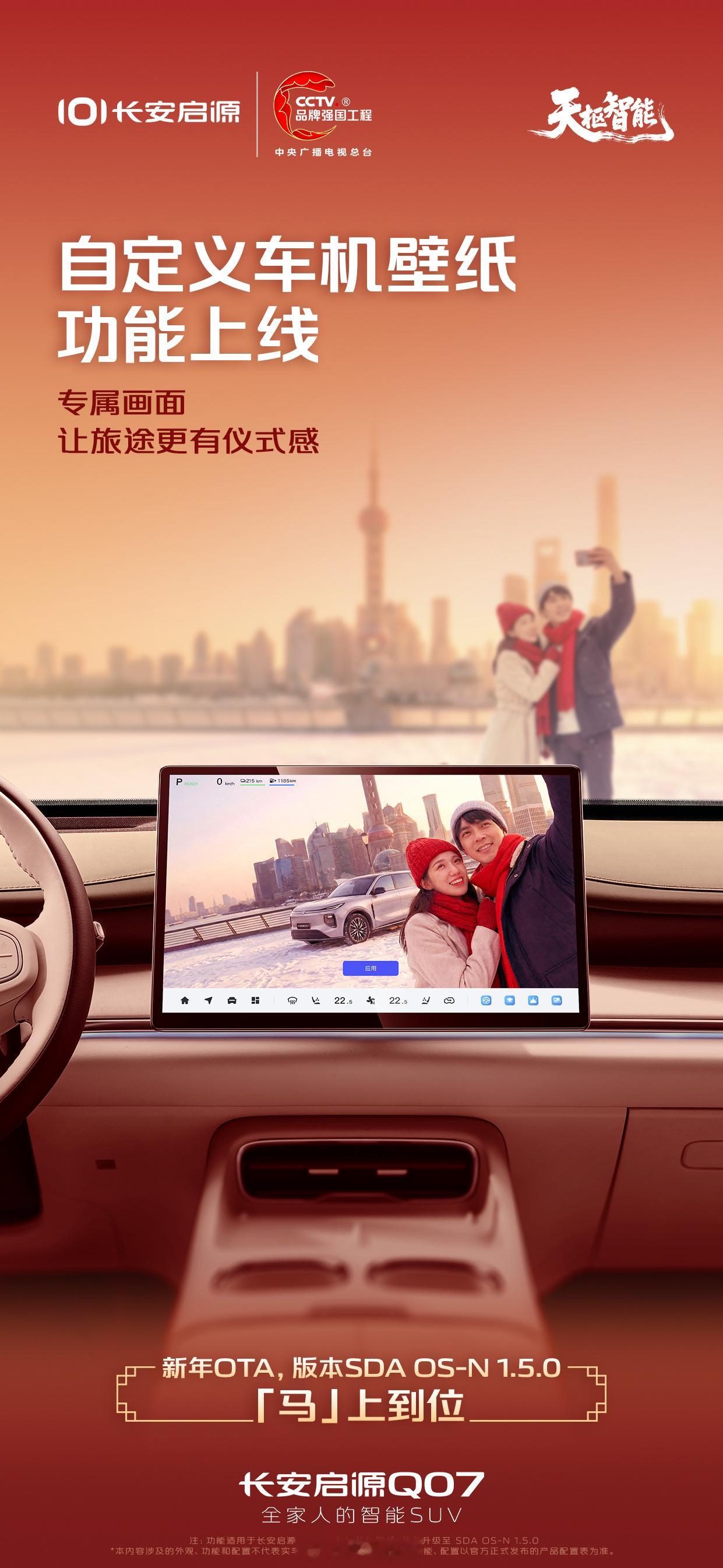 新年第一波 OTA 来了,启源 Q07 这次升级挺实在的。Carlink 2.0 上车,手机和车机融合更顺了;空调多了速热模式,冬天上车不用再硬扛;还能自定义壁纸,小细节但很加分。不是那种“看不见的升级”,而是每天用得上的进步。天枢智能这套,确实越用越顺手。长安启源Q07 全家人的智能SUV 天枢智能新安全