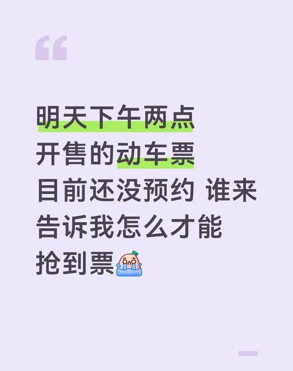 明天下午两点开售的动车票 目前还没预约 谁来告诉我怎么才能抢到票[哭惹R] 抢 明天下午两点开售的动车票 目前还没预约 谁来告诉我怎么才能抢到票[流泪] 抢票 高铁 求助 票来票来票从四面八方来 火车票 大学生 动车
