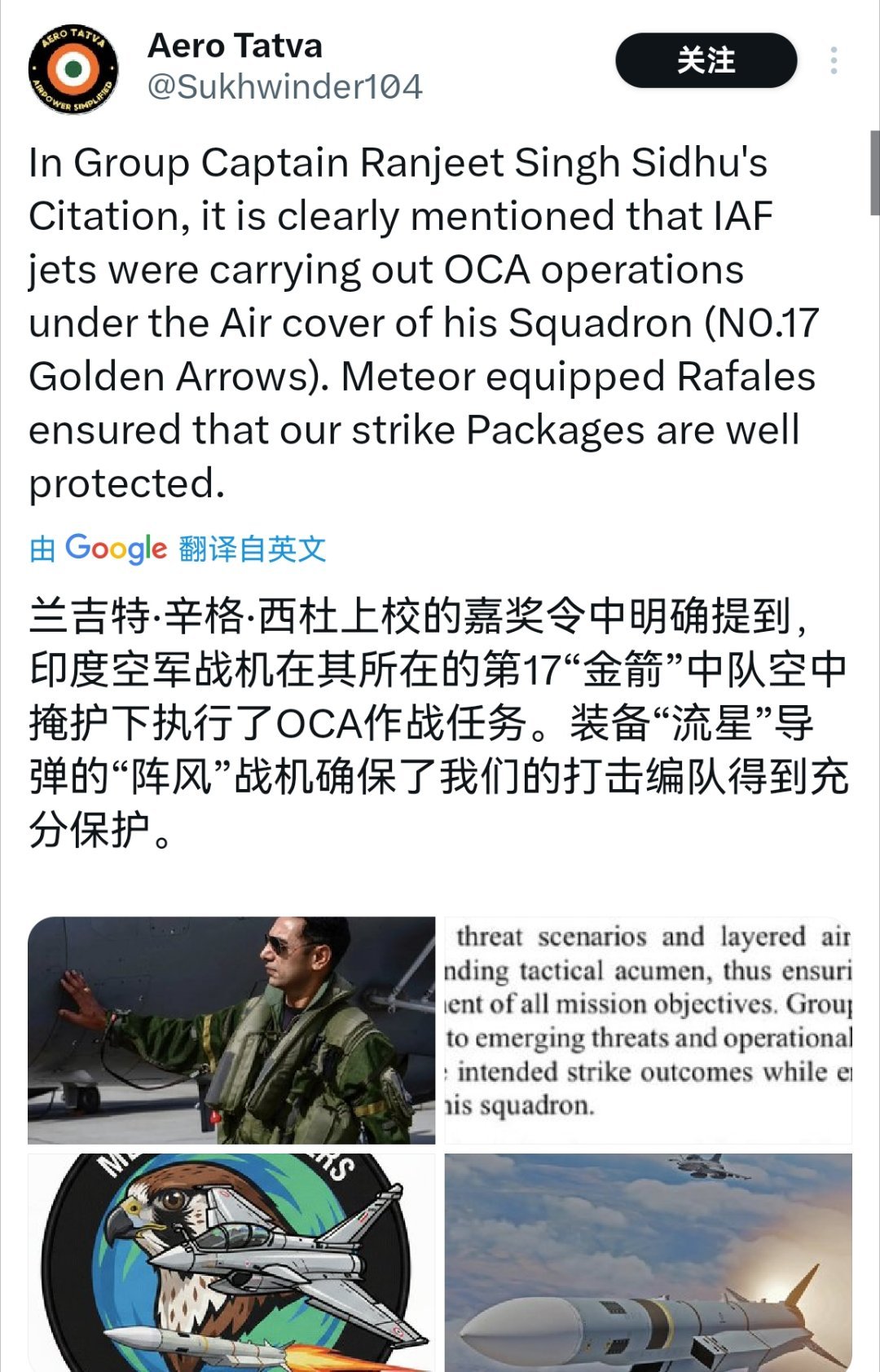 🔻绷不住了,印度给57空战的阵风飞行员颁发奖章,说阵风战机成功保护机群执行了进攻作战任务,装备流星导弹。🔻被你保护的米格29掉了2架,幻影2000也掉了,可能还有苏30MKI,你到底保护了什么鬼啊?