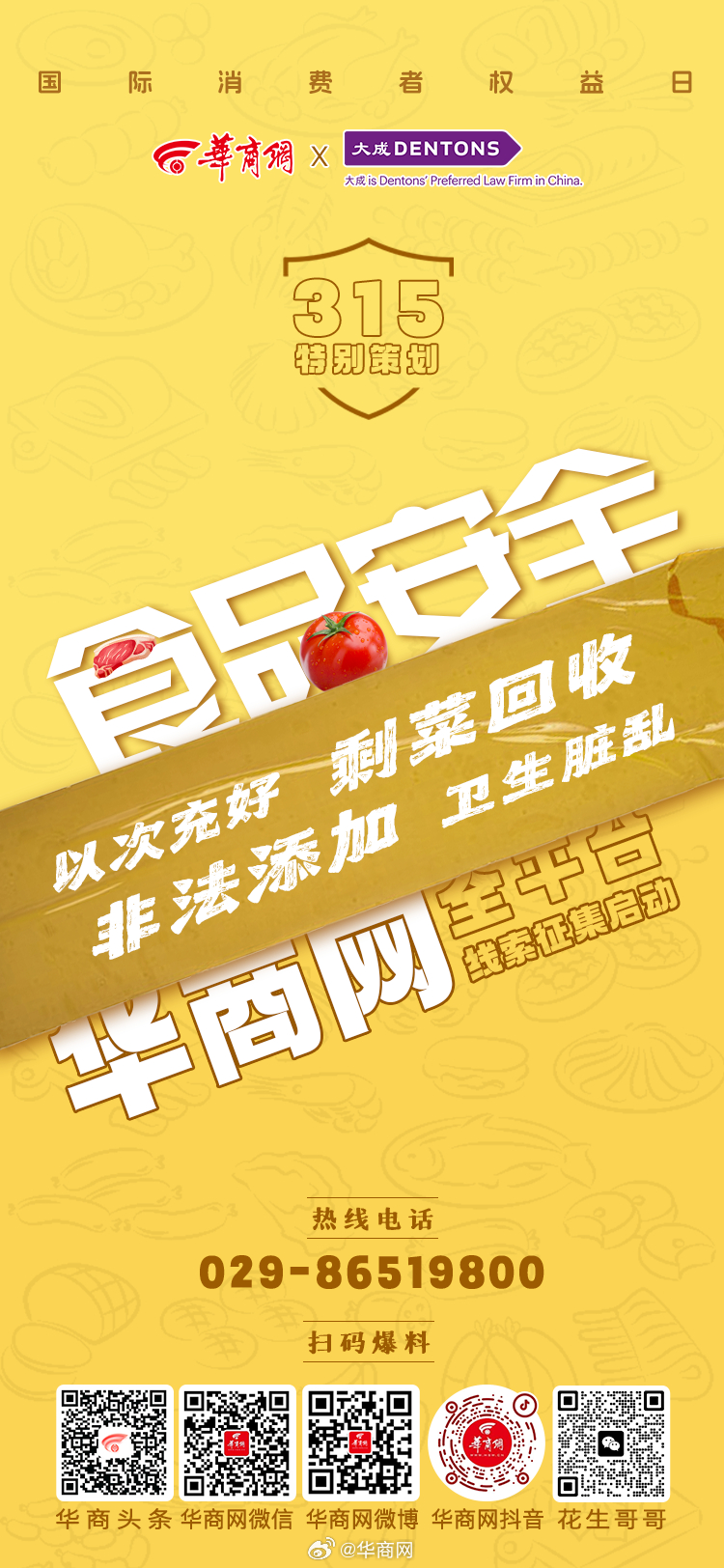 【华商网全平台“3·15”线索征集启动】以次充好、剩菜回收、非法添加、卫生脏乱…如果你在日常生活消费中合法权益受到侵害,欢迎提供新闻线索。邀请专业律师为你解答维权问题#消费维权不止315#