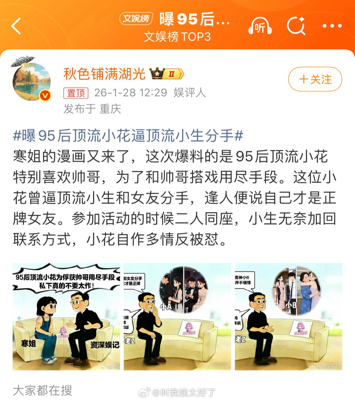 95后顶流小花逼顶流小生分手,这说的是谁?95后顶流小花这个范围广吗?曝95后顶