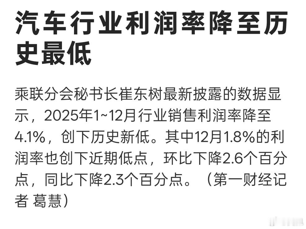 只有4.1%了,卖得越多,却赚得越少,你来出出主意?汽车行业利润率降至历史最低2025中国汽车行业利润率仅4.1%
