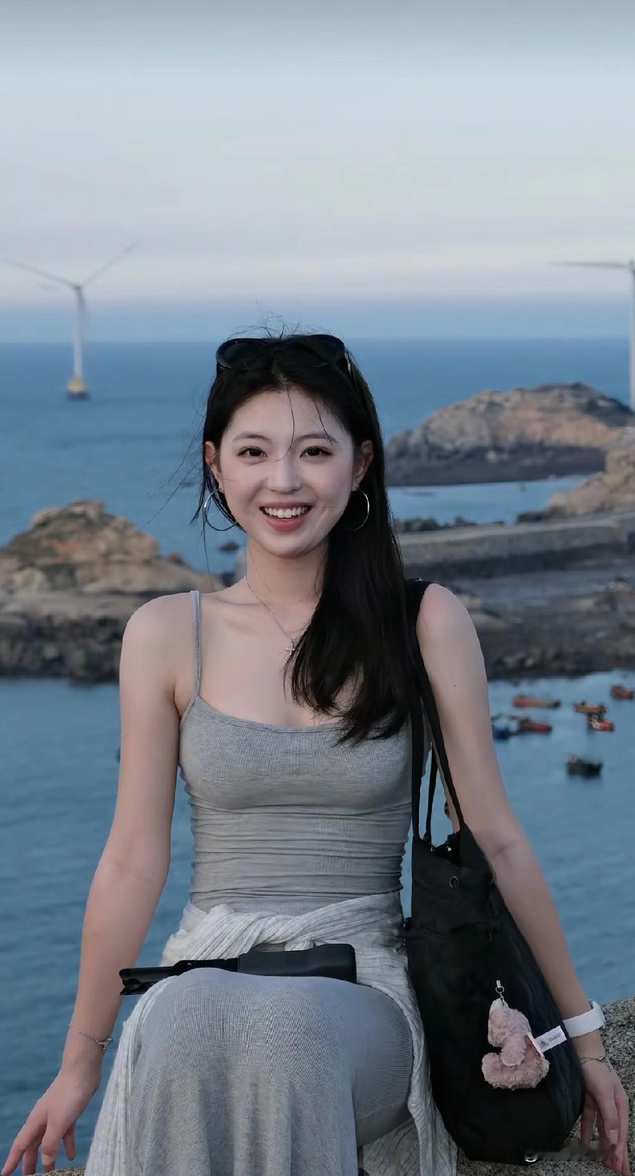 黑白条纹的清新夏日穿搭,搭配自然背景,轻松自在。