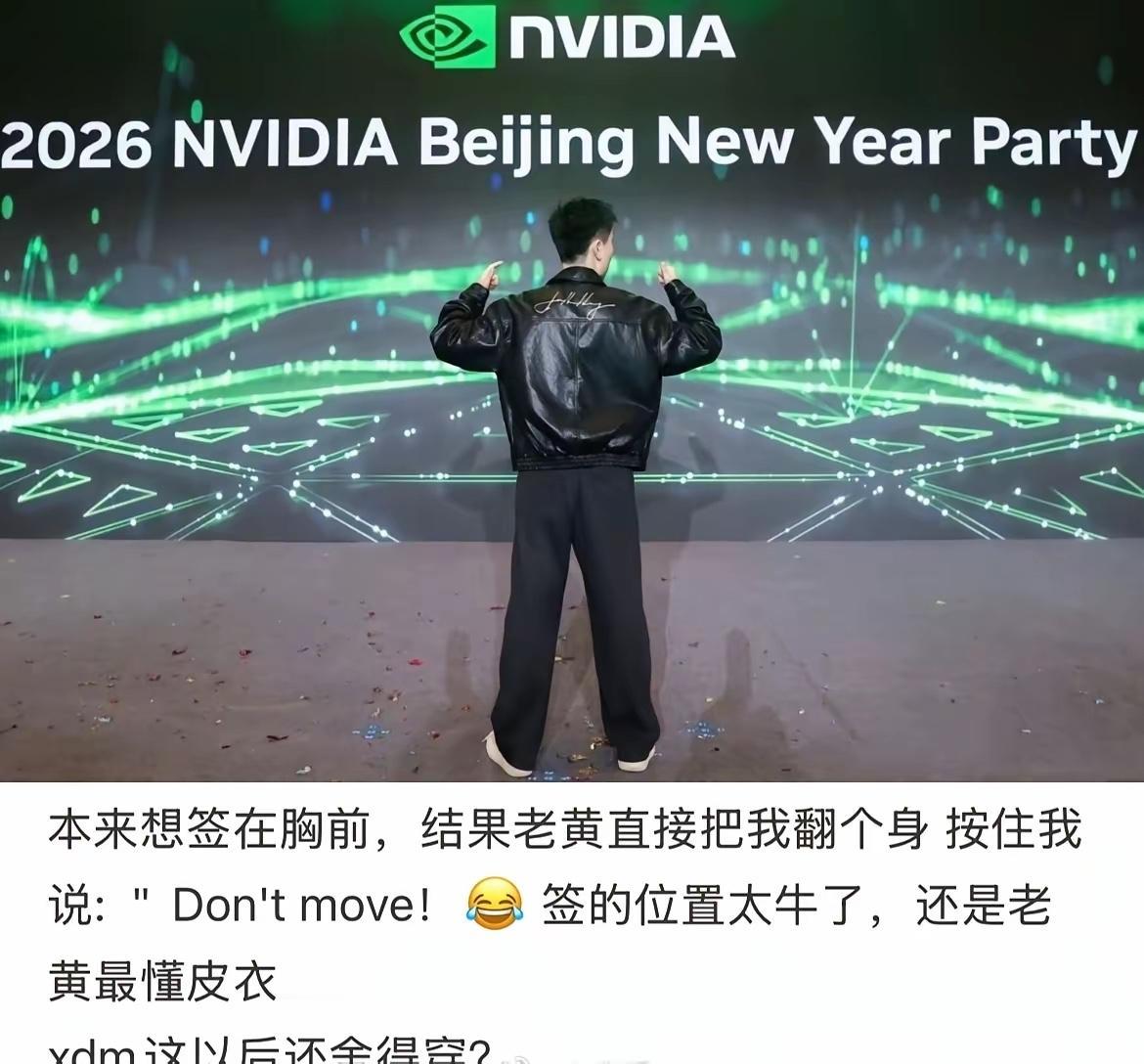 英伟达最牛年终奖,黄仁勋的亲自签名皮衣! 黄仁勋还是非常的喜欢皮衣呀,直接在员工的皮衣上进行签名,这个皮衣极具收藏意义。 相信把这件皮衣拿到市面上给挂出来也有人会进行收藏,英伟达的市值节节攀升,目前的市值已经超越了大多数国家的GDP了。