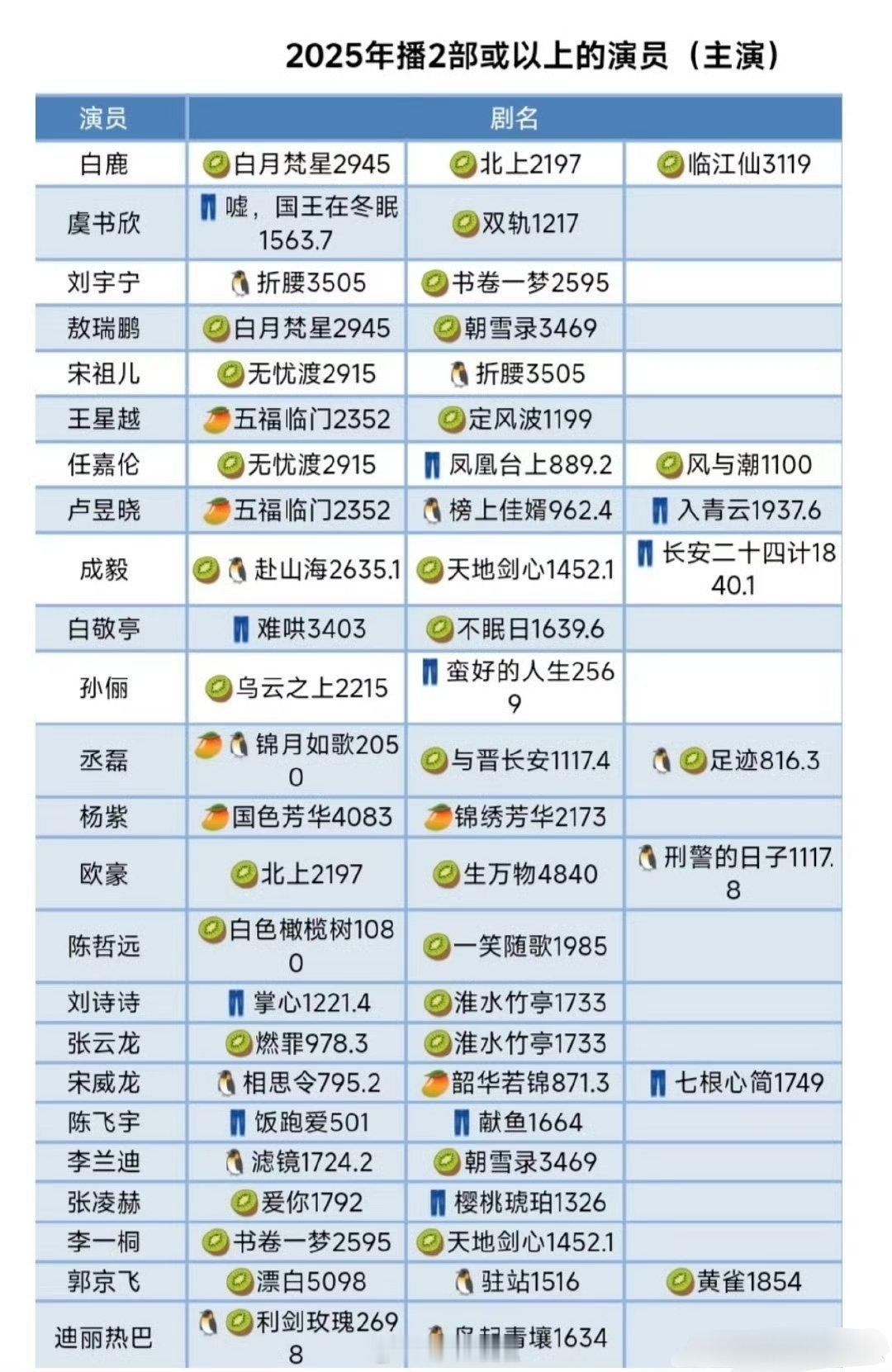 2025播了两部或以上的演员,来看看成绩单