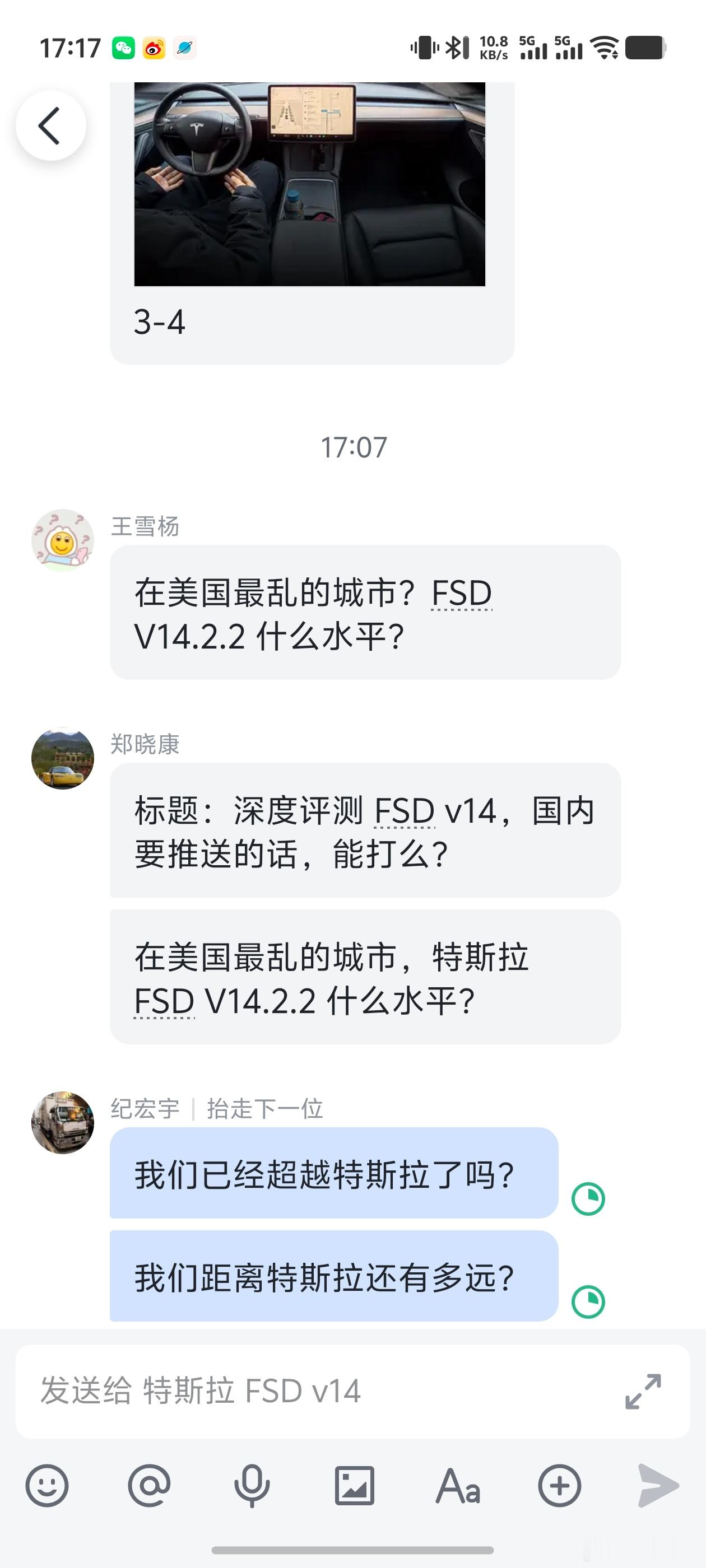 说 FSD 的视频标题想了一半了,让我帮忙想想另一半。我问你那一半是啥,他说「深度评测 FSD v14