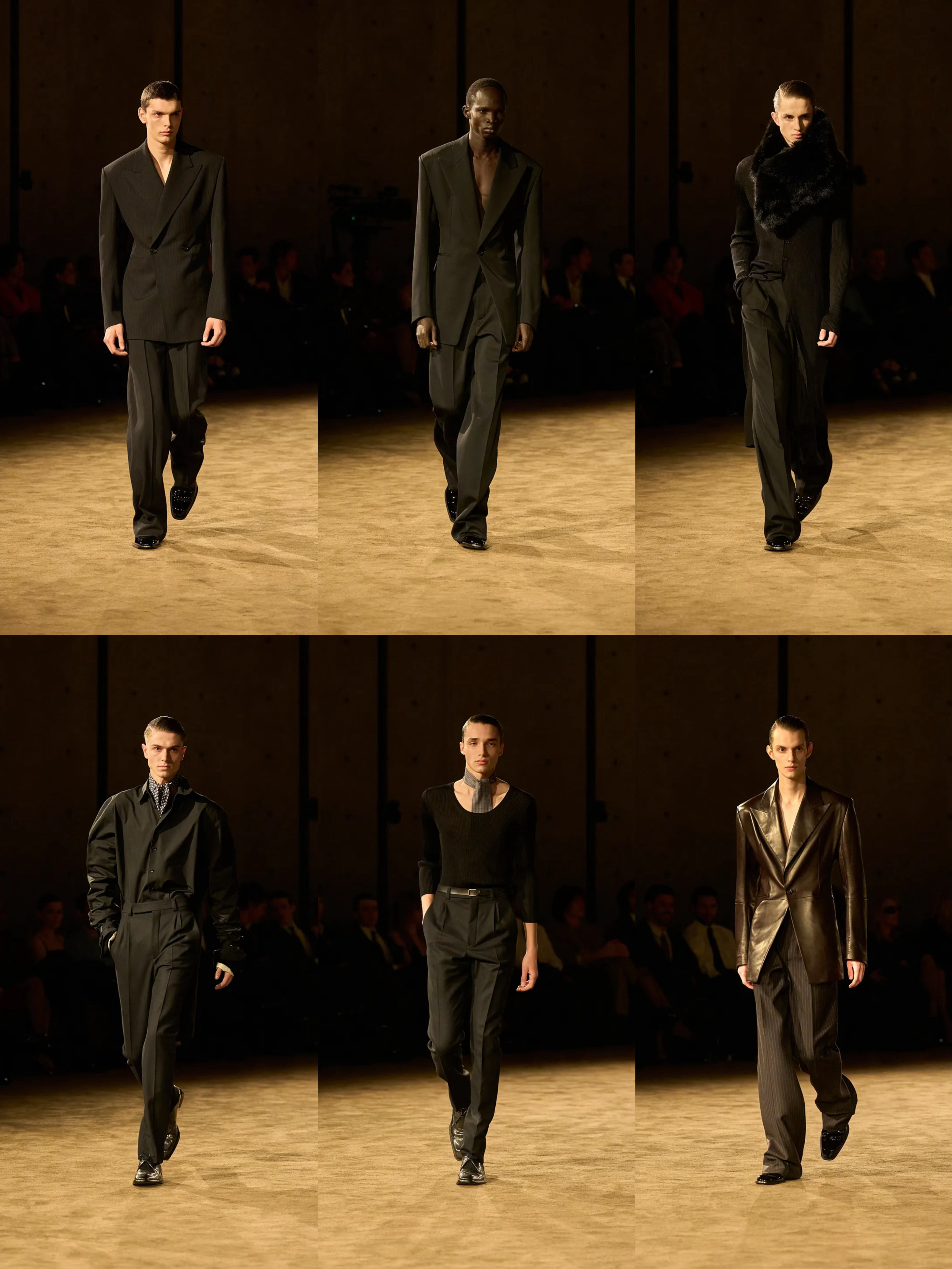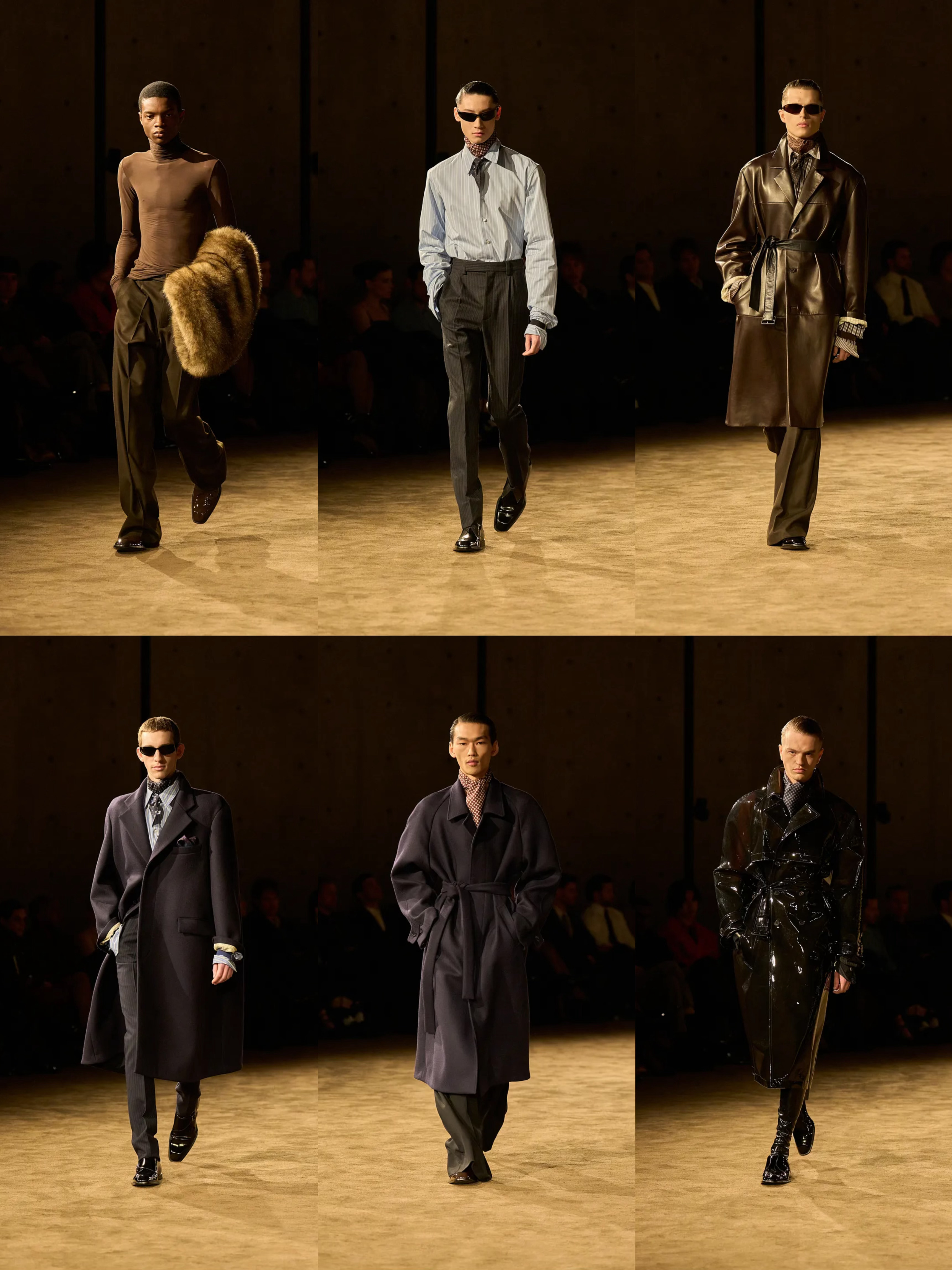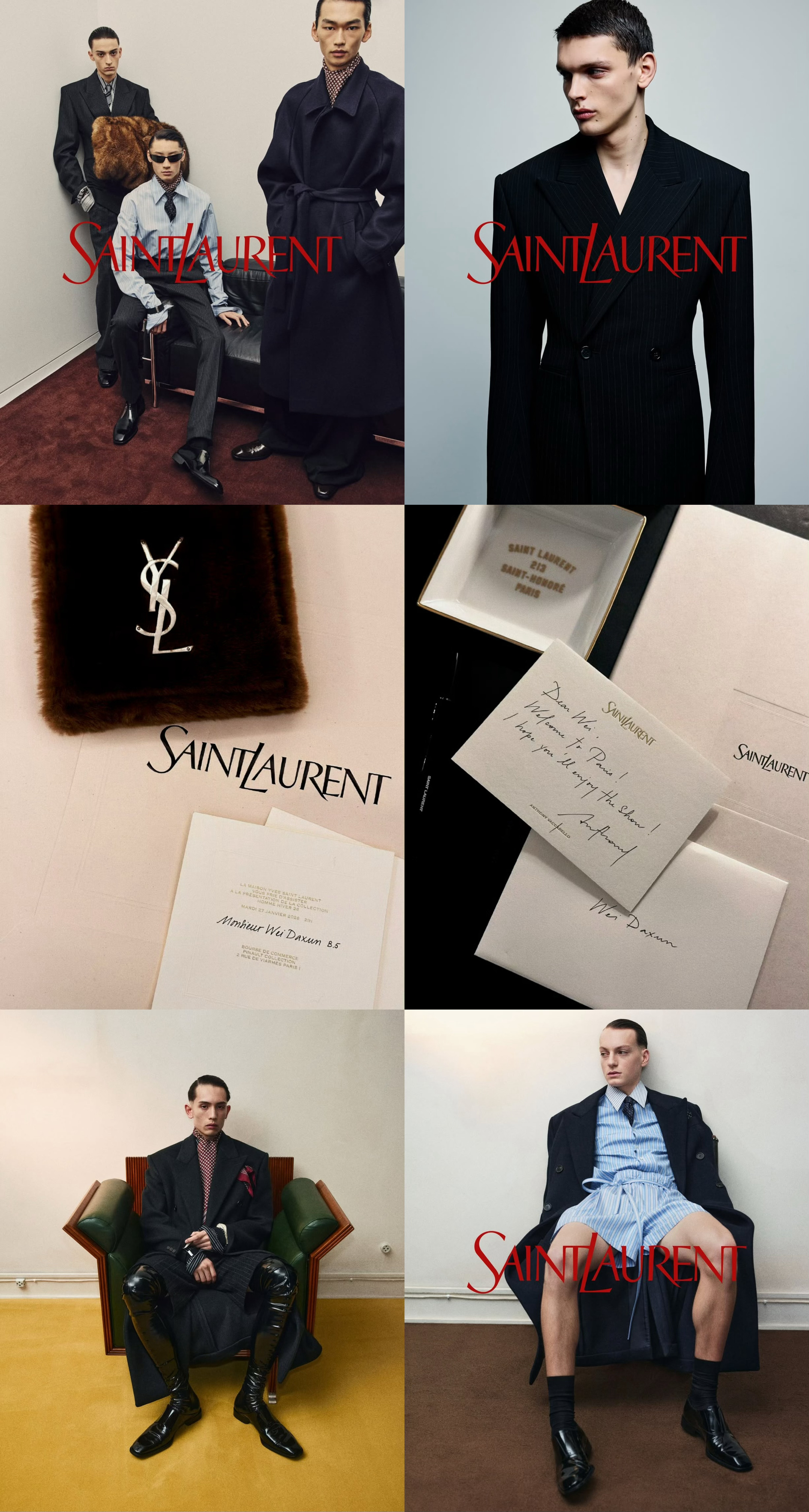 魏大勋与圣罗兰巴黎再聚圣罗兰巴黎男装大秀魏大勋 × Saint Laurent,2024秋冬、2026春夏、2026秋冬,这已是他第三次受邀出席圣罗兰巴黎大秀:从初登亮相的经典条纹西服套装,到第二次身穿常人难以驾驭的廓形皮衣出场,再到今天一袭墨绿风衣搭配深棕缎面衬衫与酒红长裤的造型出镜,不同风格下完美消化品牌时髦且锐利的aesthetic,成为YSL Man 气质场中优雅与霸气兼具的诠释者——不为造型所缚,演绎属于自己的叙事风格。Anthony Vaccarello 缔造的2026 冬季男⼠系列,延续对男性魅⼒与⽓质的持续追问与思考。James Baldwin 的开创性著作《乔⽡尼的房间》成为Vaccarello 的创作原点,纤⻓流畅的廓形,令刚与柔相⽣相济;柔软的褶皱肌理,利落肩线以轮廓赋予⽀撑,经典吸烟装以经典特质与先锋精神承载品牌标志性创新与突破。魏大勋本次的大秀亮相,收获法国、意大利等多国版本「ELLE」、「L'OFFICIEL HOMMES」等多家权威媒体争相报道,持续夯实大勋在国际时尚舞台的影响力,续写与品牌的深度默契。复古撞色在光影间流淌出雅痞的浪漫,腰间同色系腰带勾勒优越比例,超大墨镜增添权威十足的神秘感,现场更以一系列 Gettyimages 生图好状态惊艳全场,再次演绎率性而浪漫的法兰西风格,这份东方面孔与巴黎时装基因的共鸣还在创造新的可能性,星光与风格同聚,旅程即勋章。
