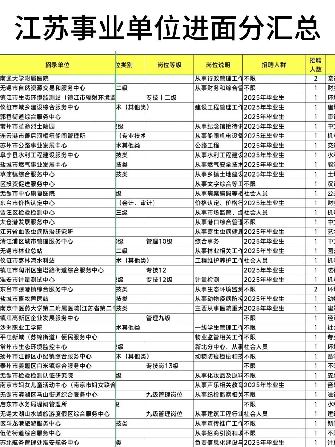 给大家整理了江苏事业编岗位表、竞争比、江苏事业编进面分🔥