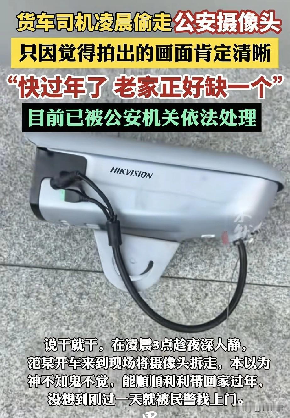 “太搞笑了!”男子偷走公安局安装的治安摄像头,他觉得肯定比自己网上买的清晰度高,正好家里缺个摄像头,于是就找来螺丝刀等工具给偷偷的拆走了,不出男子所料这摄像头果然清晰,把他的作案过程全部都记录了下来,被民警传唤后他直呼:“怎么这么快就找到了我了!”网友调侃:“能不清晰吗,这可是公安局严选!”