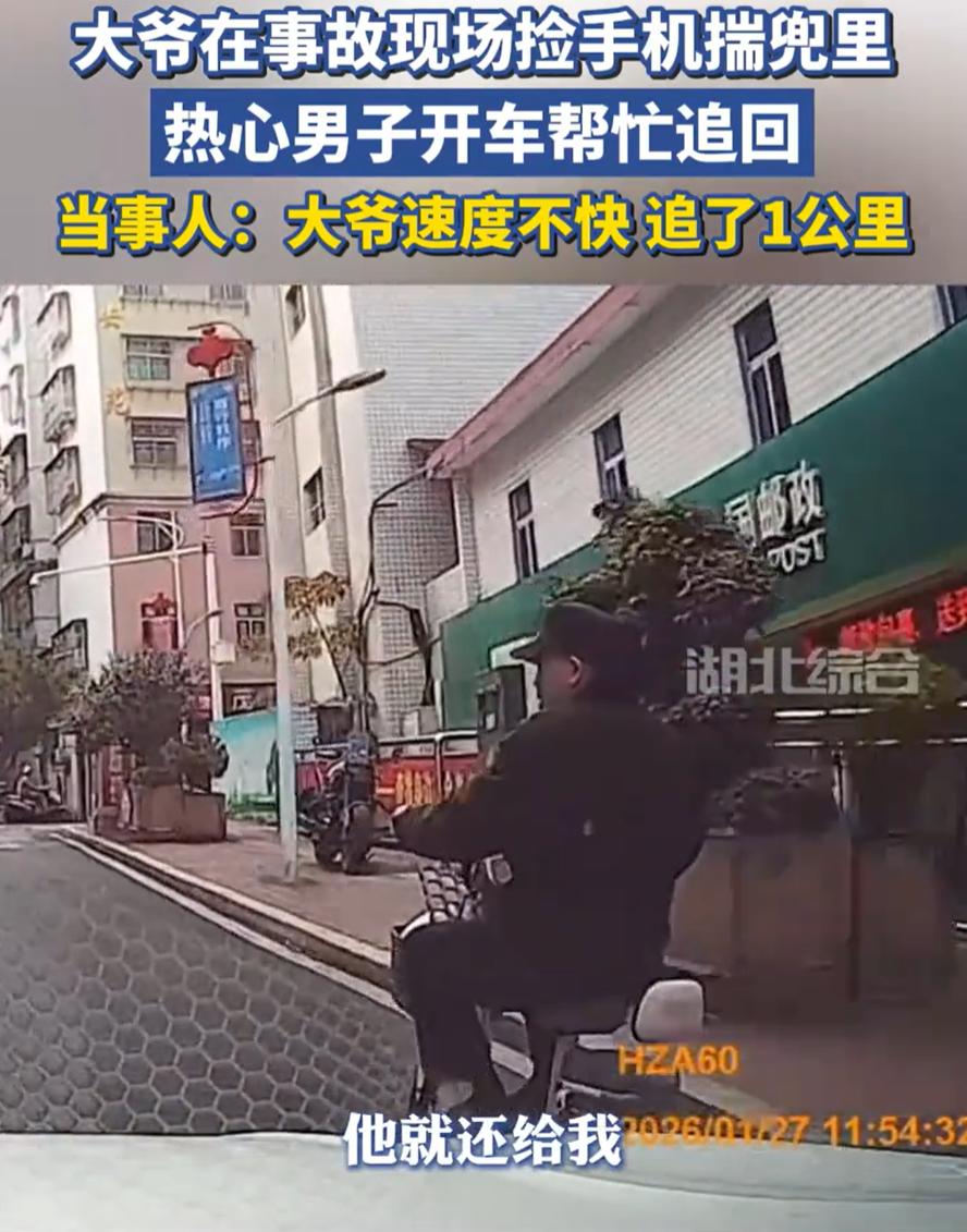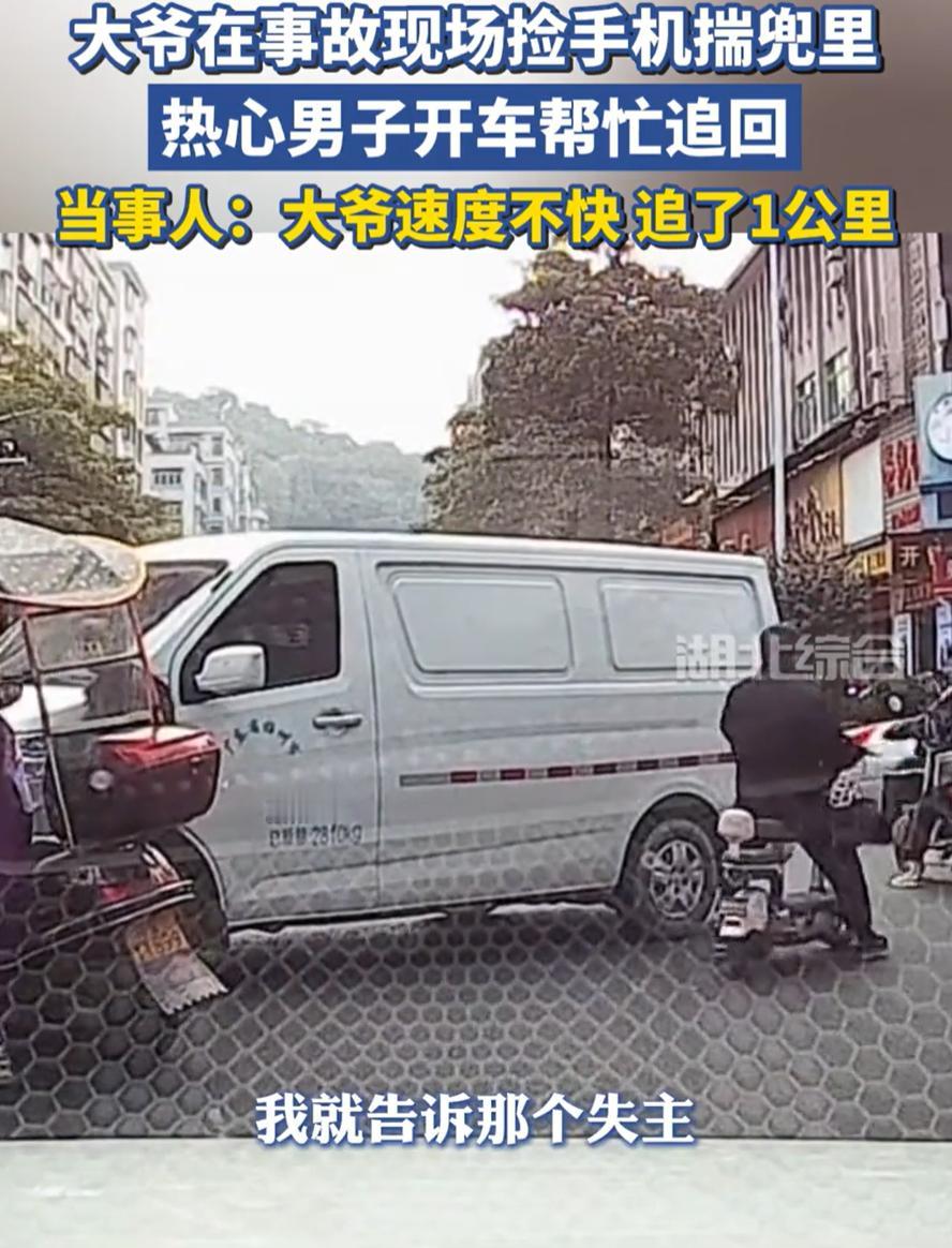 “这也太缺德了!”广东梅州,一男子开车时遇到交通事故,正等待时,就发现一名大爷在事故现场捡起一部手机,可失主就在旁边,大爷却把手机放到自己兜里,男子按了两下喇叭提醒,大爷依旧我行我素开车离开,随后男子跟随一公里把手机帮忙讨了回来 监控显示,当时路口一辆面包车和一辆电瓶车发生刮蹭,就在两边车主争论时,一名大爷骑着电动车过来,但他不是来围观看热闹的,而是发现事故现场有人掉了手机,他立刻上前弯腰捡起 这一幕,刚好被路过的司机丘先生看到,他本以为大爷捡起手机是要还人家,结果却发现大爷直接揣进了自己兜里,然后骑车离开了 丘先生将大爷捡走手机的事告诉了失主,但失主跑着也追不上,无奈之下,丘先生好人做到底,开着车跟随了一公里,本来想看看大爷家住哪,但看他开的也不快,干脆就拦住大爷 大爷愣了一下,显然没料到有人追上来。丘先生也没绕弯子,直接说,老师傅,你刚才在事故现场捡的手机,是人家掉的,还给人家吧 大爷脸上有点挂不住,支吾了一下,可能看丘先生态度坚决,周围也开始有人注意,最后还是从口袋里掏出了那部手机。丘先生拿过手机,道了声谢,没再多说别的,转头开车给失主送了回去 事情不大,却让人心里不是滋味。事故现场,本是人遇到麻烦需要帮忙的时候,却有人趁机拿走了别人着急要用的东西。手机现在不只是个通讯工具,里面绑着太多东西,丢了真是寸步难行。丘先生的两次提醒和那一路追赶,讨回的不只是一部手机,更是在拉住那种“趁乱占便宜”的风气 有时候,我们路过一些混乱的现场,可能也会看到类似的事。有人丢了东西,有人顺手牵羊,多数人觉得事不关己,看一眼就走了。但丘先生的做法给了另一个答案:多看一眼,多问一句,多管一次“闲事”,可能就能帮别人省去一大堆麻烦