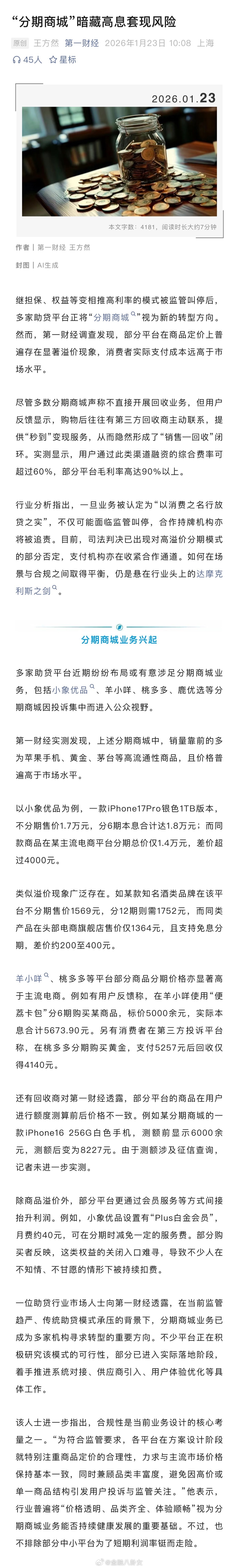 “分期商城”暗藏高息套现风险,有的实际融资成本超60%(来源:第一财经)