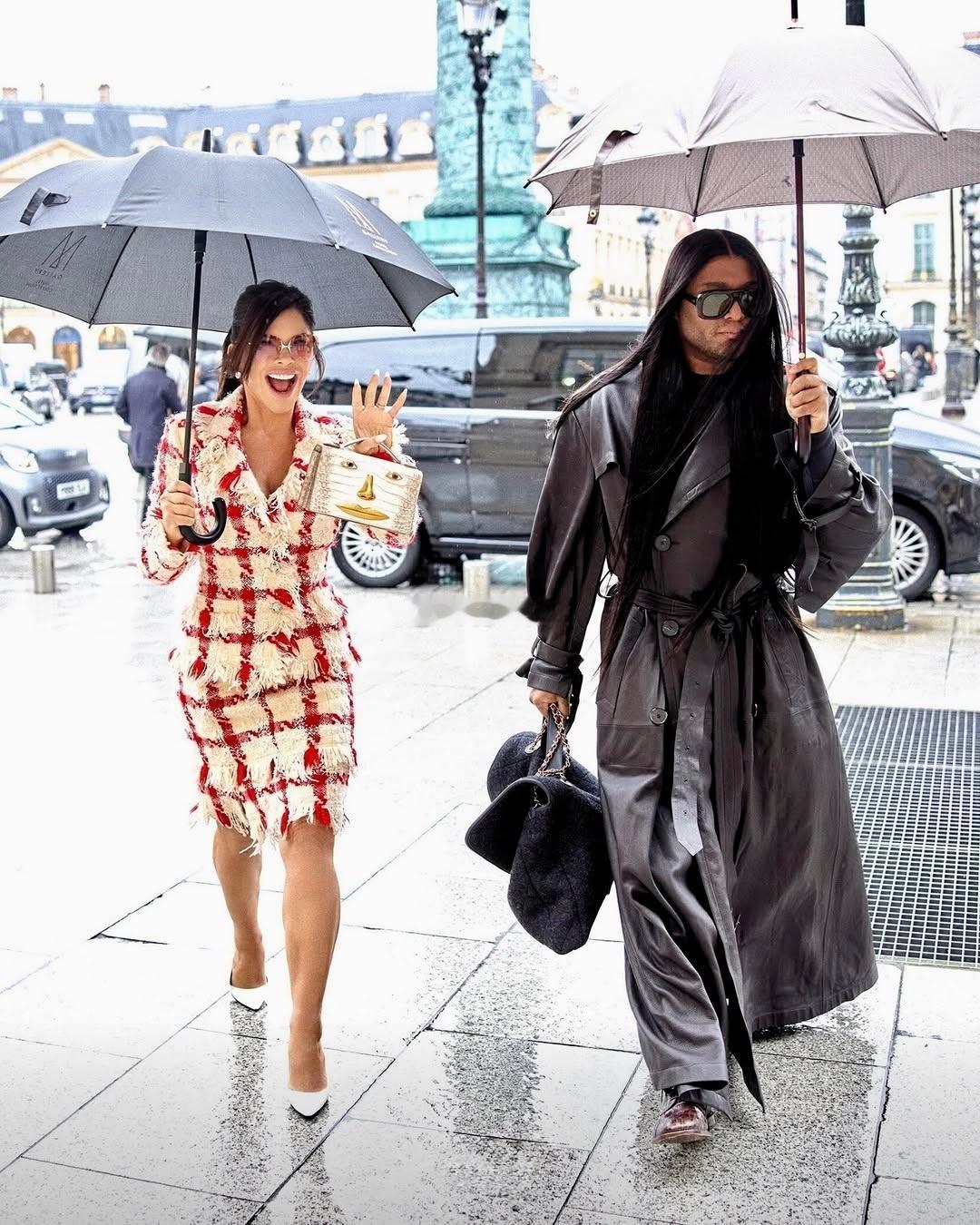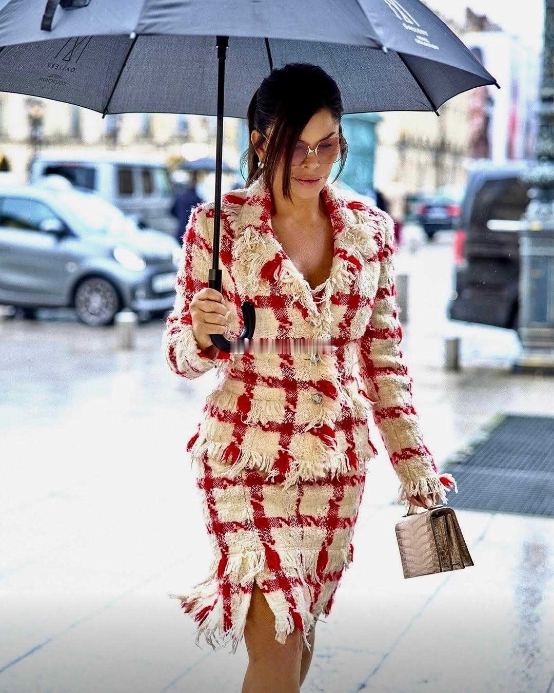 巴黎高定周|桑切斯被拍到跟Law Roach一起出行👇所以是请到了这位赞达亚的御用造型师开始为自己服务了么桑姐选择了一身2004年Versace的粗花呢套装,搭配白色尖头Jimmy Choo和Schiaparelli的包