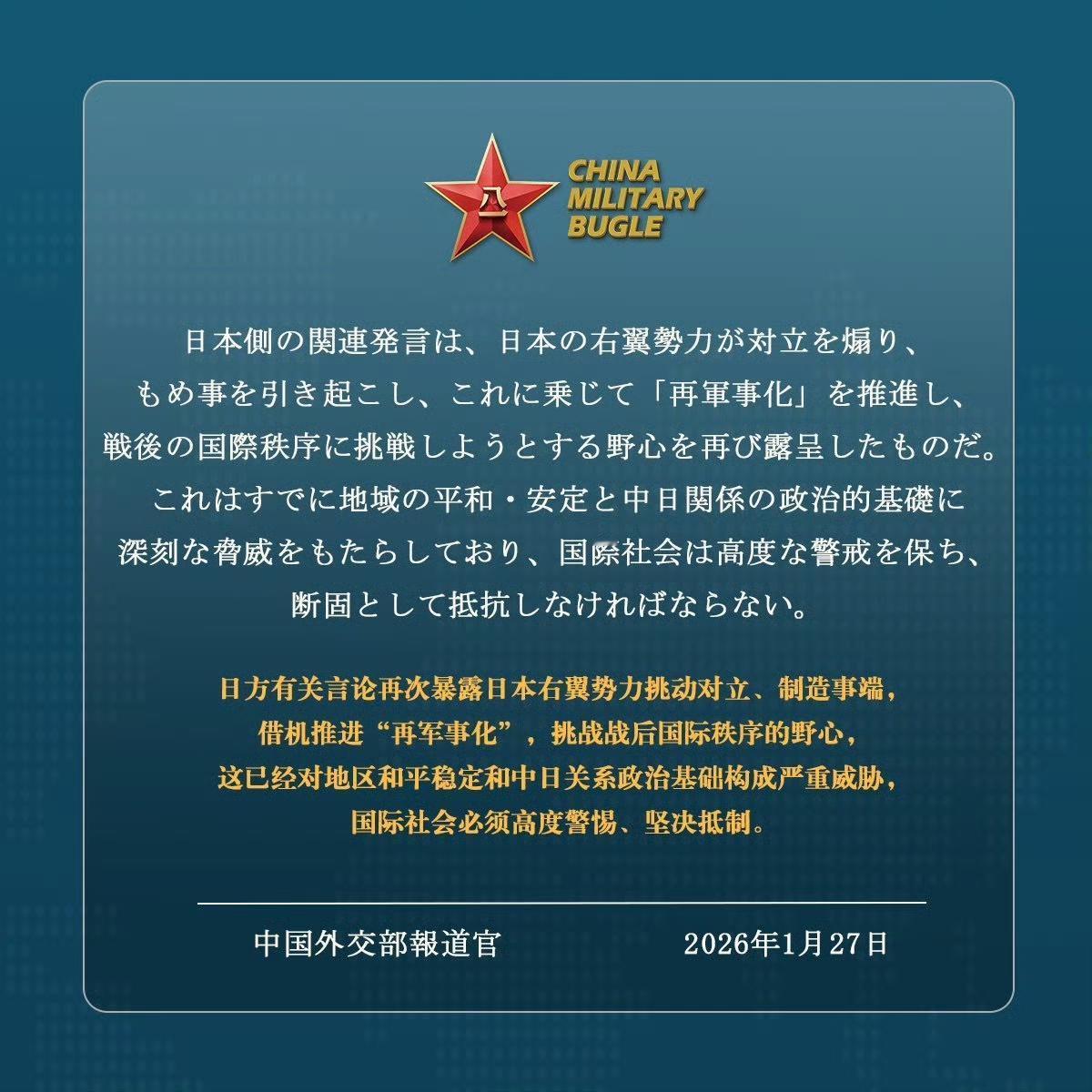 军号称东倭已对地区和平构构成严重威胁!这次开启进攻模式,不再是以前那种解释型的发布!直指倭国就是个祸害!全人类都要警惕并抵制它! 是时候要让倭国受点教训,它们一直以来暗暗搓搓搞去军事化,搞针对我们的渗透,一点点在“西南诸岛”部署反舰导弹,妄图染指蛙岛等等等等… 清算倭寇的历史进程应该开启了!