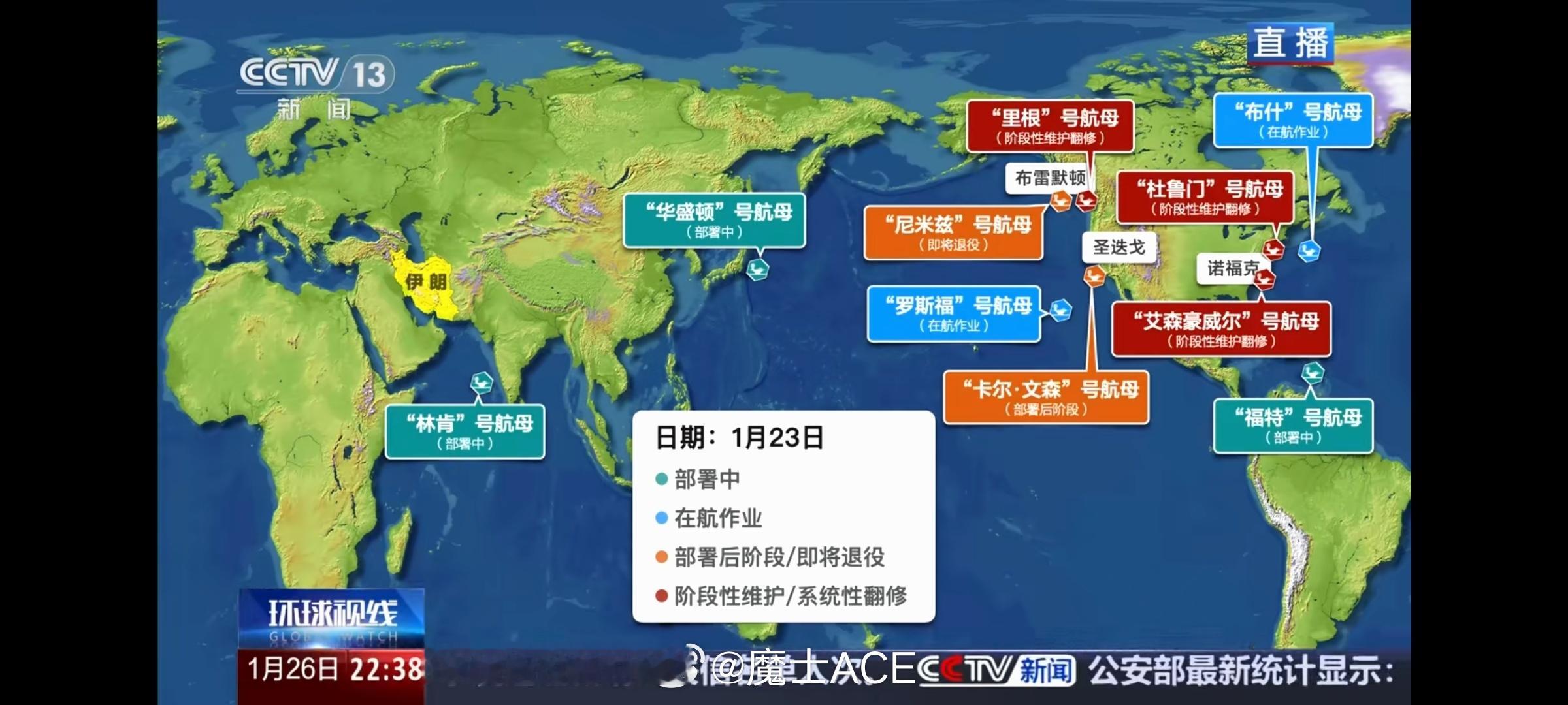 麻了,老美惨遭背刺!此时此刻,美国正在筹备对伊朗的战争准备,哪知老乡老乡背后一枪,法兰西直接背刺。不过这纯属活该……谁让你特朗普前几天像个抢饭头子喊着要吞并格陵兰岛还要对法国征税的!不仅要征税,老川子还嘲笑马伏龙的红眼病墨镜~~你不仁就别怪法无义,你老美现在全球只有三艘航母在部署,剩下两艘在备勤,再剩下的全在排队等休。还在预备对伊朗开战……这不是给了法国上脸跳舞的好机会。法兰西唯一核动力航母戴高乐号,拉着24个欧盟国家,到北大西洋展开了“猎户26”军事演习。这场军演,完全撇开美军,由法兰西海军舰队主导,意大利当陪衬,从土伦港出发,至少6艘战舰开往北大西洋。什么是北大西洋,那不就是格陵兰的外部海域么?之前37人大军,在关税战的威胁下打了个卡就回去了。但这波,威慑力比那37头大军要大多了。整一个航母编队,1艘航母2艘地平线驱逐舰1艘防空护卫舰1艘核潜艇。法兰西为了格陵兰也是够拼的。格陵兰割让是不可能割让的,这辈子都不可能割,只能不停忽悠老美拖着谈判这个样子。烽火问鼎计划热点现场美伊对峙