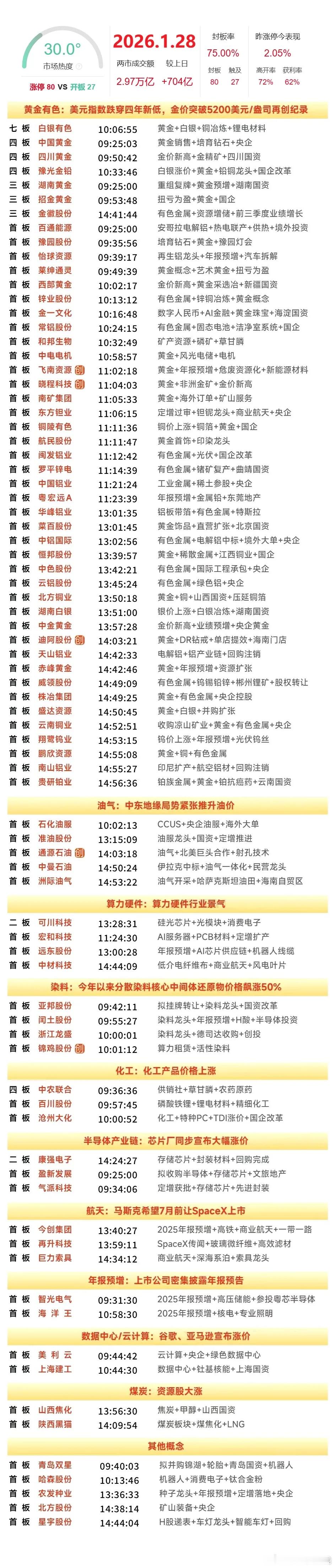 1月28日,全天封板复盘。