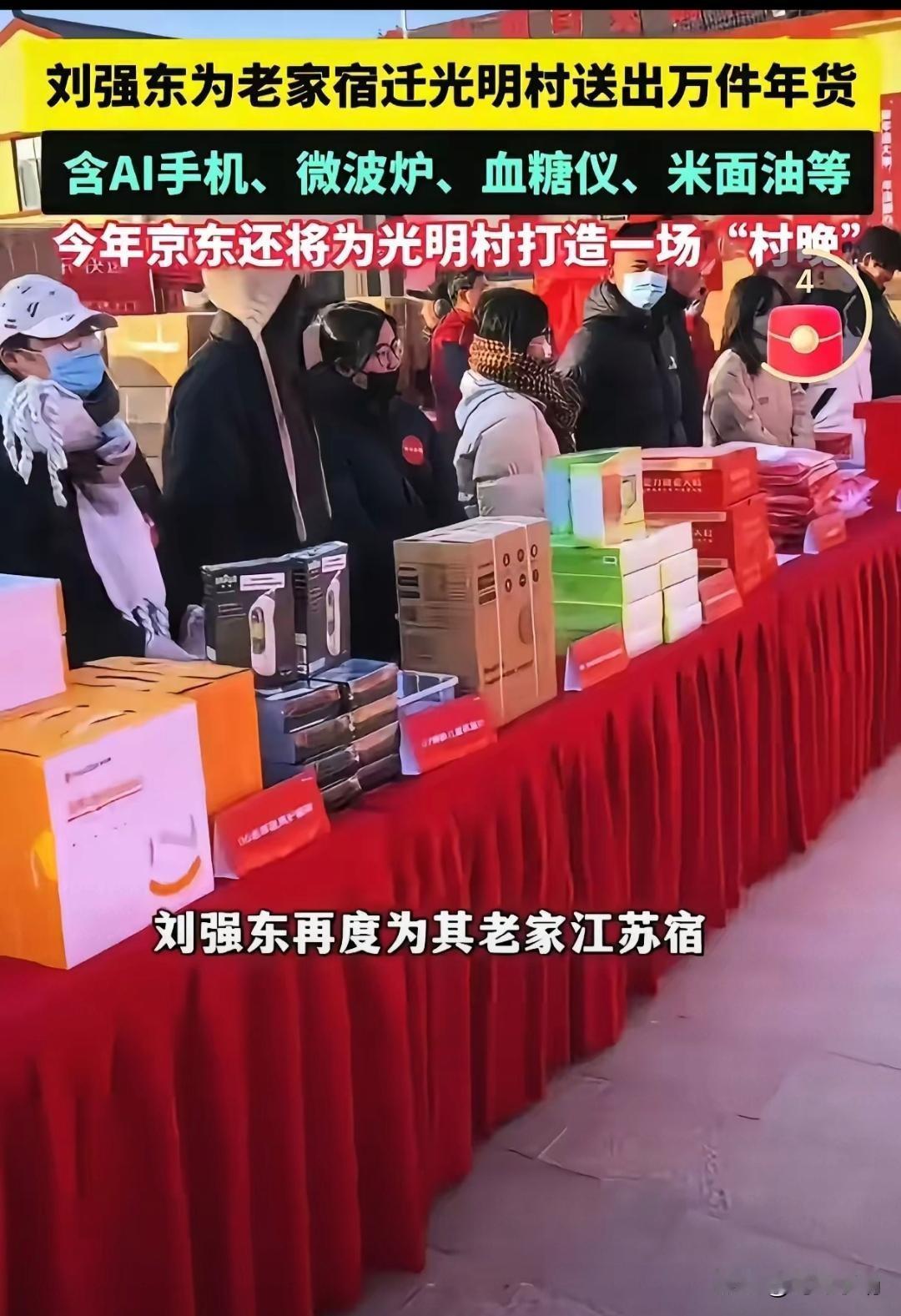 刘强东老家的村民每年都有一个期盼,儿女回不回家倒也无妨,关键是“东子”必须回来。 刘强东每年回来,不仅会给老家村民一万块现金,还会送上诸多实用物品,像手机、微波炉、血糖仪、米面等。 谁家儿女每天回家舍得又是给父母钱,又是送东西。