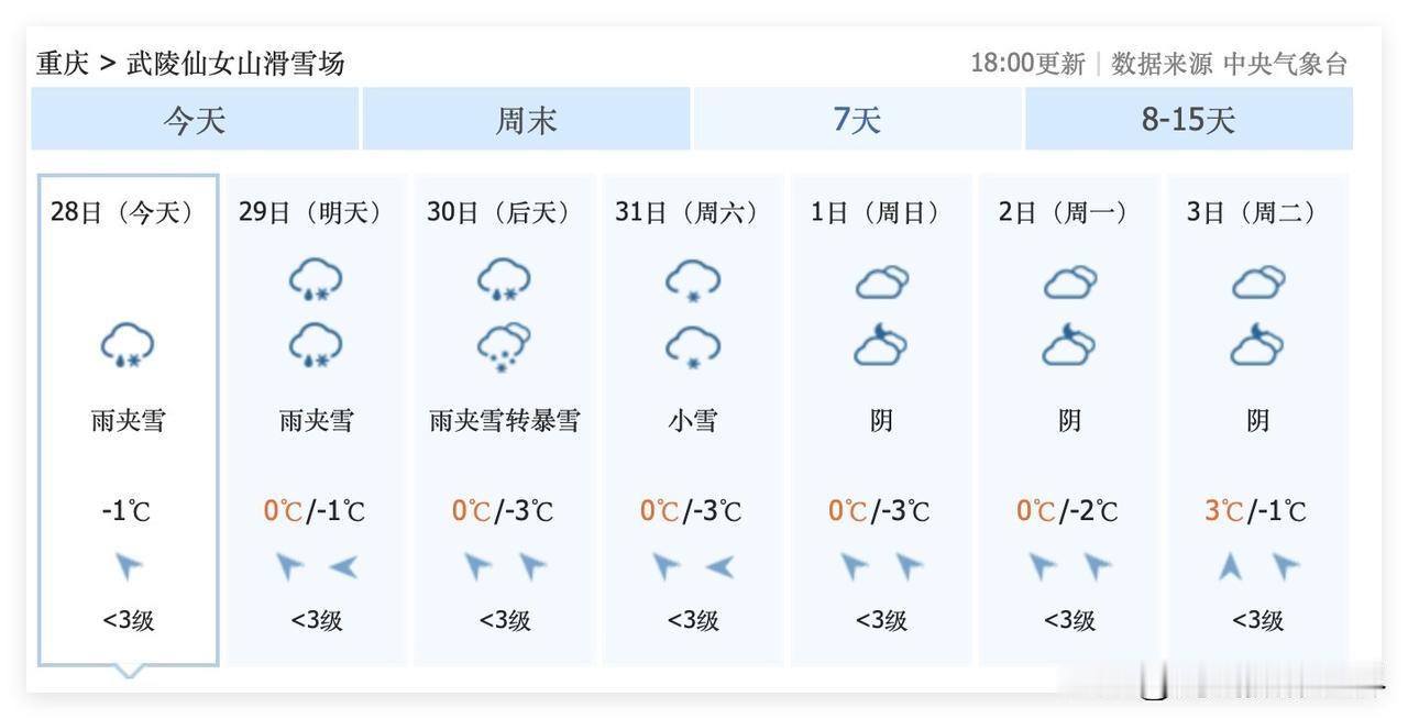 一个坏消息,一个好消息!超强冷空气来袭,重庆主城区,又要降雨降温啦!1月29日到2月3日,重庆的太阳公公又要去流浪啦!哎,最近,重庆阳光太少了……就出了两天太阳,今天太阳又消失了! 1月30日和31日,重庆这波降温,最高气温又要跌破10度了!哎!真的是特别的凄风冷雨啊! 没有办法,真的没有办法啊! 好在,超级计算机认为,2月4日到11日,重庆主城区,可能会迎来暖冬,气温回暖,阳光可能经常回来!还好还好! 最后,这波降雨降温,重庆仙女山,金佛山,南天湖,武陵山……可能会下雪,局部可能大雪甚至暴雪……啊啊啊!想要看雪玩雪滑雪的重庆人,一定要抓紧机会! 2月10日以后……下雪就没有那么容易啦!