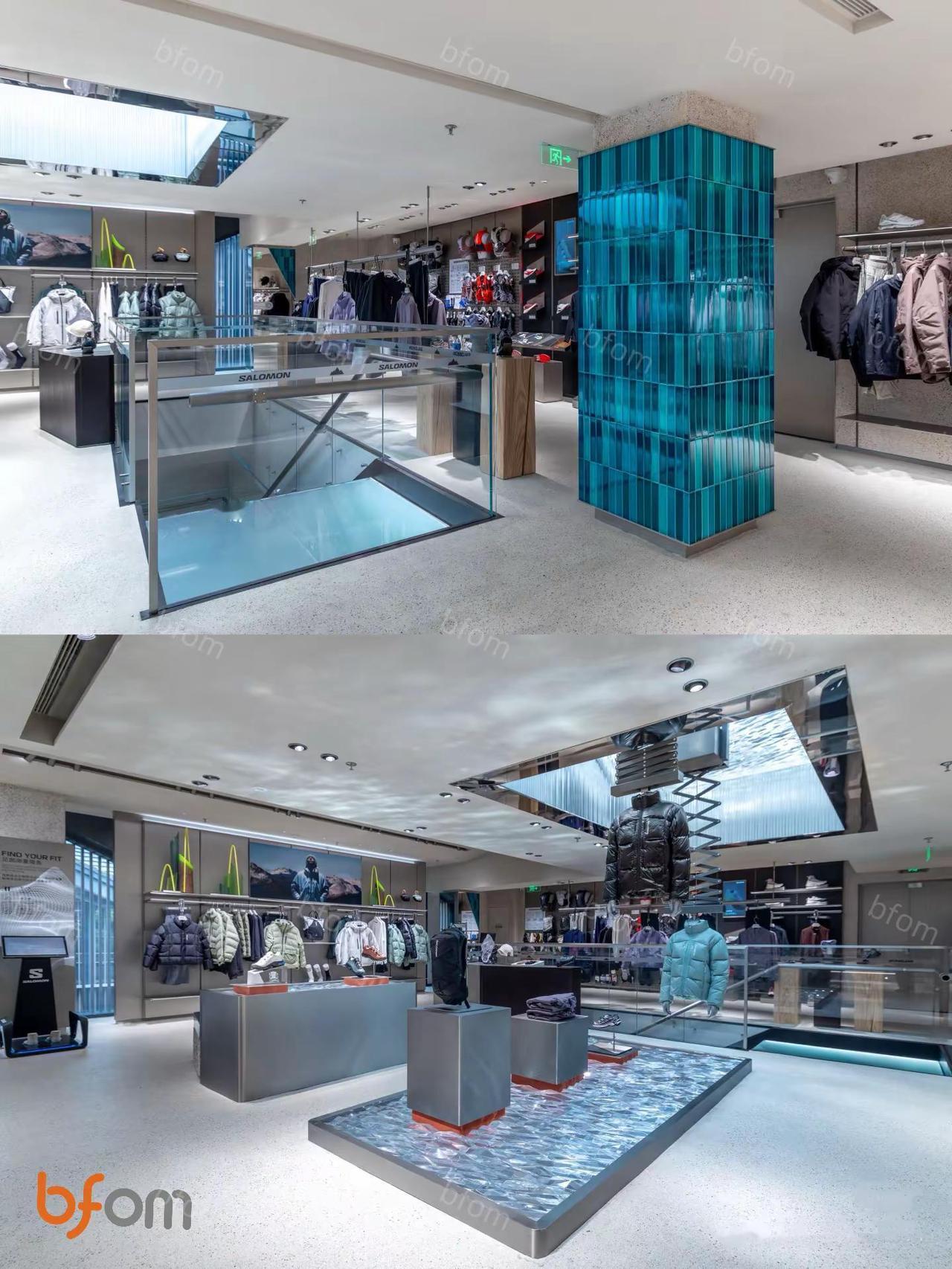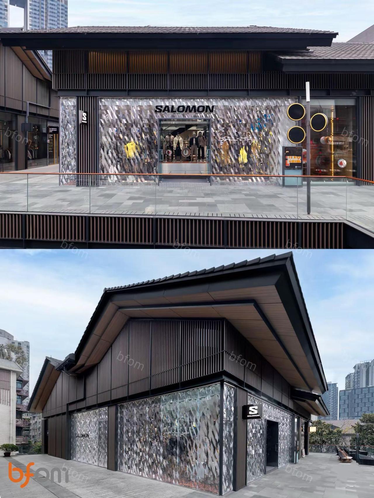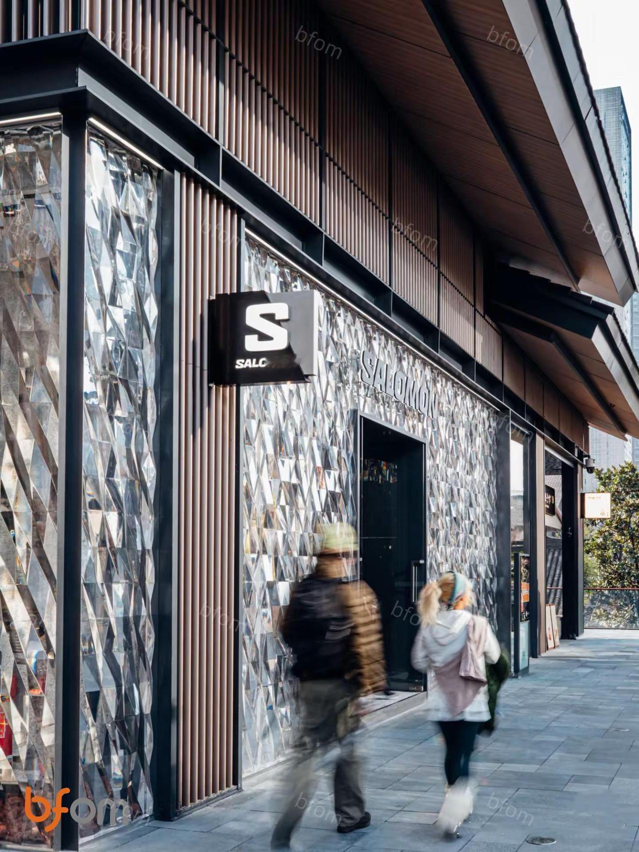 成都潮人速冲!Salomon全球首店的BFOM树脂板外立面美到失语✨直接把户外山野的松弛感焊在街头,一整面菱形切割BFOM树脂板太会了阳光打过来折射出满屏光影,渐变质感白天银灰高级、夜晚暖光温润,和新中式建筑适配度拉满进店更惊喜!波纹BFOM树脂板天花揉碎自然光,树脂板地面藏着碎石肌理,逛店像沉浸式徒步户外机能风穿搭配艺术感空间,随手拍都是大片📍成都shua Salomon全球首店下午3-4点拍外立面光影绝了,速来打卡~商业空间设计 树脂板 餐饮空间设计 树脂玻璃