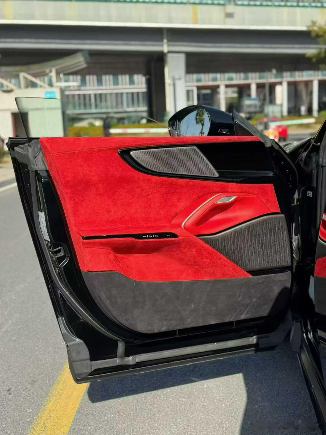 法拉利FUV,外观设计:采用分层式进气格栅、LED光源头灯及贯穿式尾灯组,车顶与后尾翼采用无缝平滑设计以减少风阻!车身侧面延续法拉利经典造型,配备无边框对开门结构!
