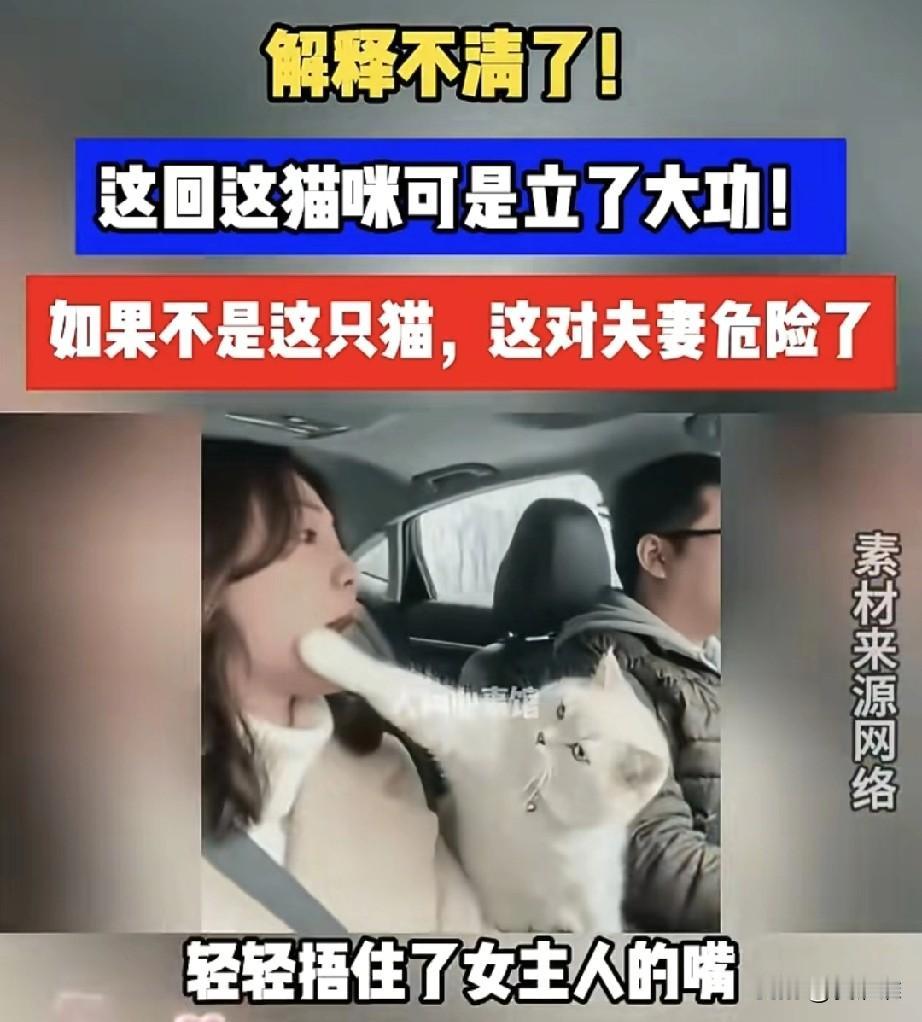 一对夫妻开车回老家,路上妻子为小事唠唠叨叨不停,丈夫一声不吭的专心开车,没想到一旁的猫咪突然伸出爪子,轻轻捂住了女主人的嘴,妻子顿时愣住,哭笑不得地说:“不说了,不说了”,猫咪才松开爪。可没过一会儿她又想说,猫咪再次抬爪“捂嘴”,像个小家长一样。 这段视频火了,网友笑称:“猫都听不下去了!”