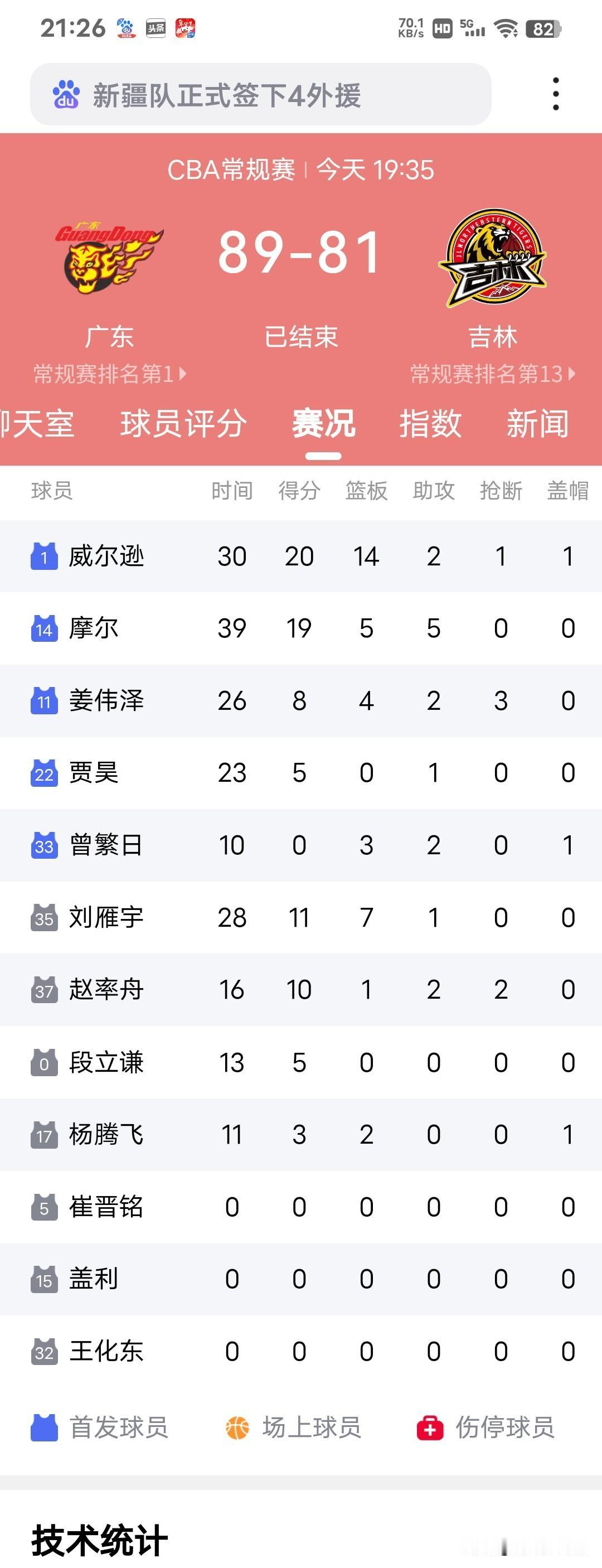吉林客场81:89不敌广东,赛后主教练钟诚点评一针见血: “前两节我们陷入了对方比赛节奏”让对方投中不少三分球,而且吉林队篮板上虽然抢赢了对方,但是今晚全队手感都冰凉,尤其三分球命中率不足30%.很难赢球的,球队还年轻需要提升的方面还有很多,回去好好总结球队存在不足吧。 本场比赛,曾繁日仅出战10分钟就领到4次犯规,全场一分未得,仅抢3个篮板和送出2次助攻1次盖帽,主力后卫姜伟泽被重点盯防,全场仅贡献8分4篮板2次3次抢断,三分球仅6投1中,辽宁旧将刘雁宇打得不错,全场贡献11分7篮板1次助攻。