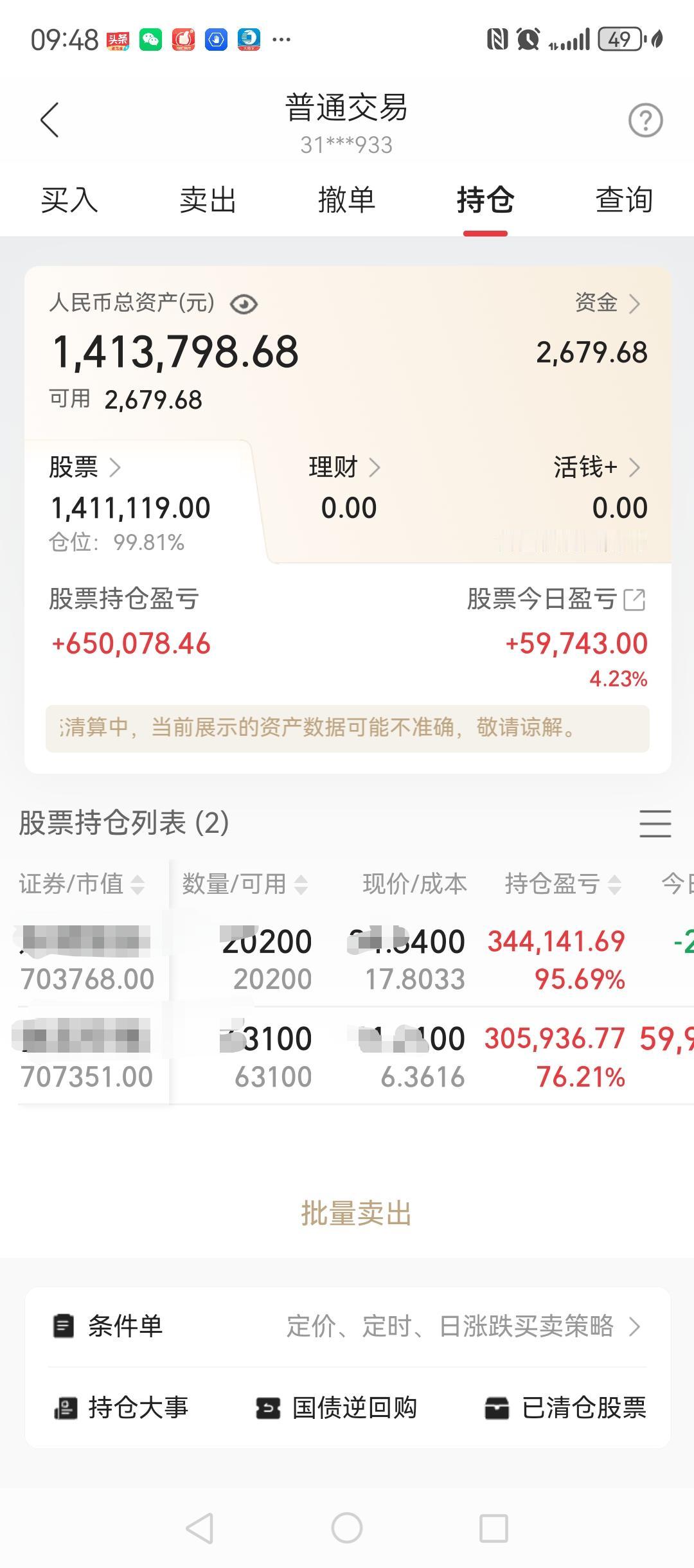 截止到昨天,账户今年的收益率是25%。今天又涨了4.23%,所以事实上到今天收盘账户的收益率应该是30%左右。 得益于最近稀有金属板块的优异表现,账户重仓的稀有金属股票连续大涨,使得收益率最近陡升。 另一重仓股前几天刚创历史新高,目前收益率已接近翻倍。