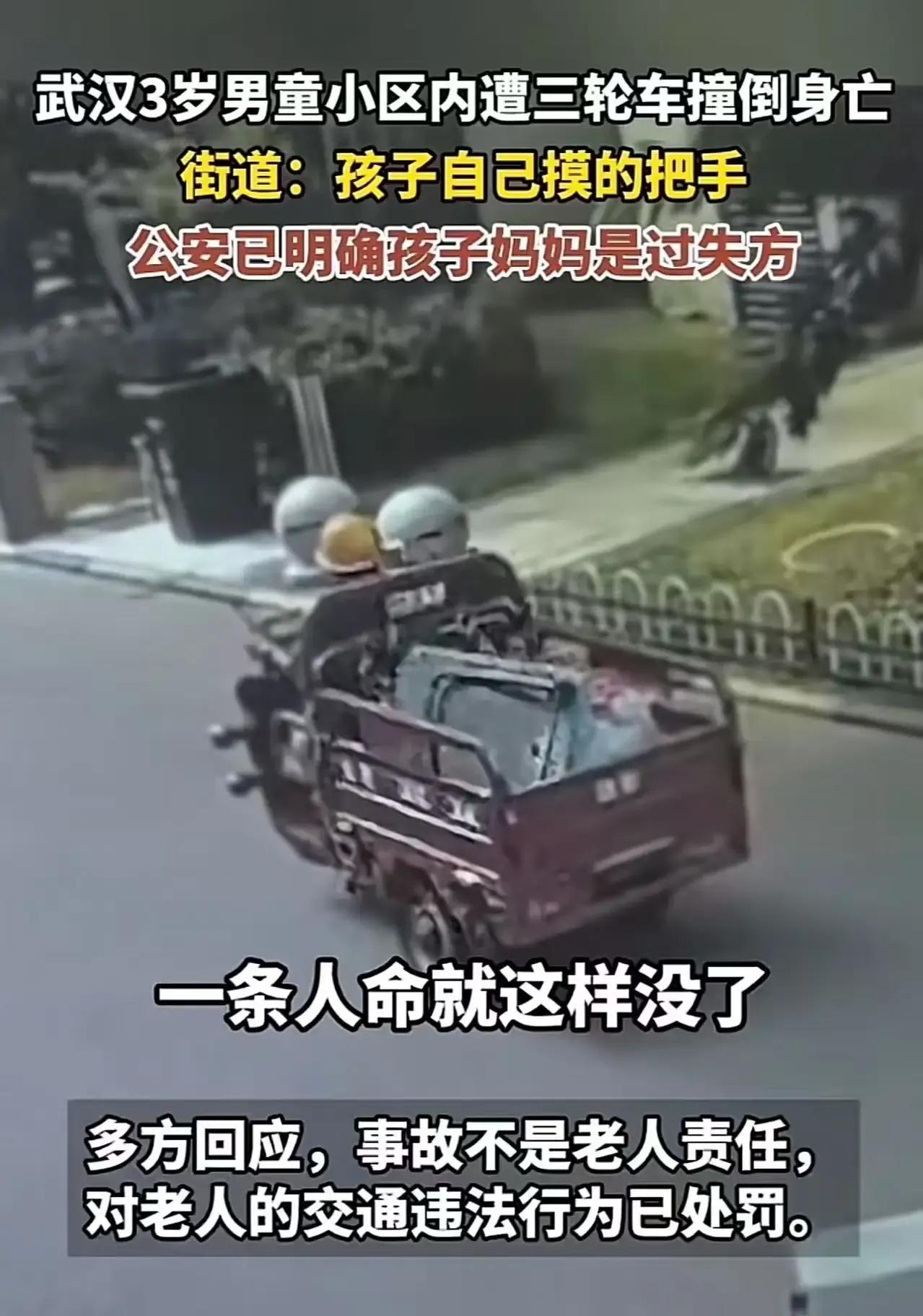 武汉一3岁男童在小区内竟遭三轮车撞倒,令人痛心!街道回应称孩子自己摸了三轮车把手,而公安已明确孩子妈妈是过失方,这究竟是怎么回事呢? 近日,这起发生在武汉某小区的意外事件引发了广泛关注。据街道工作人员透露,当时三轮车处于静止状态,孩子可能是出于好奇,自己摸了三轮车的把手,导致车辆滑动撞倒了他。而公安部门在调查后,也认定孩子的妈妈存在过失,未能尽到看护责任。这一事件迅速在网络上引发了热议,网友们纷纷表示,孩子这么小,发生这样的意外实在让人难以接受。同时,也有网友质疑,小区内的三轮车为何没有上锁或者采取其他安全措施,是否存在管理漏洞?此外,还有网友提出,家长在带孩子时,一定要时刻保持警惕,不能让孩子离开自己的视线范围,以免发生类似的悲剧。 这起事件再次提醒我们,孩子的安全无小事,家长和小区管理方都应承担起相应的责任。对于这起事件,你有什么看法呢?快来评论区留言讨论吧!儿童车祸 男童遭道路 2岁男童事故 小孩骑车事故