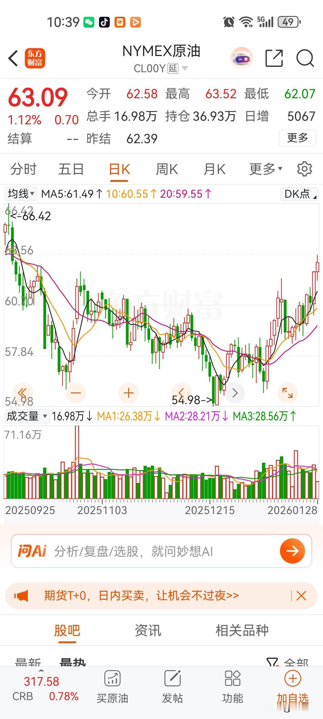 石油会不会像黄金一样,百分之百不可能,特朗普希望油价越低越好,所以化工股没有行情,当然石油公司还是值得投资。虽然油价不涨,但到处军事冲突,石油消费大,很多石油公司像中国海油毛利百分之五十以上太高了