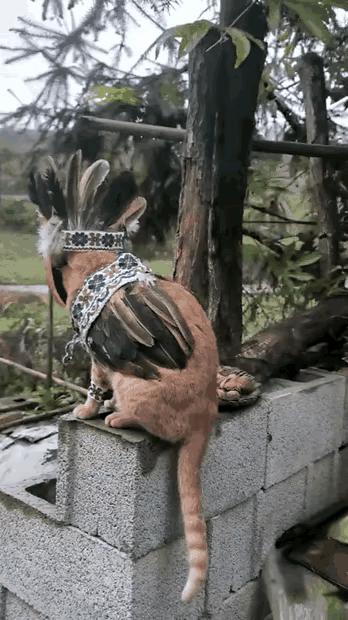 这个猫的主人也够难为猫的了,把一个猫打扮成这个样子,这个猫也比较老实,还能够接受这样的打扮,说明它还是比较通人气的。看他穿的这身行头,佩戴的这些装饰,也是花费了不少人力物力,看来主人对它还是比较重视的,舍得在它身上花功夫!