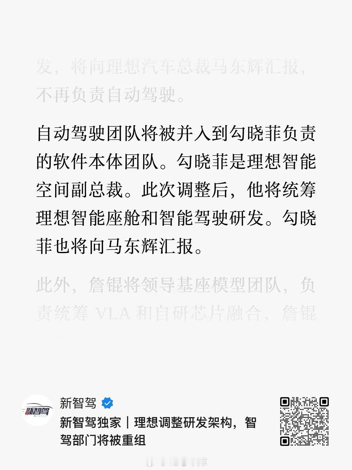 为了提升AI方面的竞争力,理想组织架构再调整:前自动驾驶高级副总裁郎咸朋将成