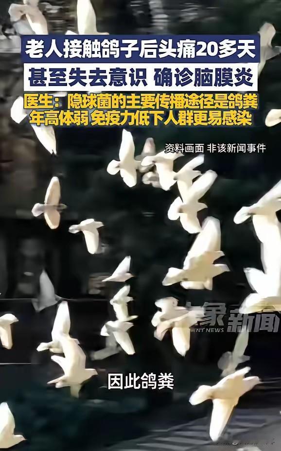 “太吓人了!”近日,一男子养了几只鸽子,为了保持清洁,他时常清理鸽粪,但每次清理时,他都不做防护措施,结果头痛20多天,失去意识就医后,被确诊为脑膜炎,治疗周期至少要半年,现在还在医院接受各种检查!网友:太吓人了吧! 谁能想到,养几只鸽子竟差点闹出人命!最近一位大哥的经历,给所有养宠人都提了个大醒,看完真的让人脊背发凉。 这位大哥平时就爱养鸽子,家里的鸽舍被他打理得干干净净,每隔几天就会亲自上阵清理鸽粪。 在他看来,这事儿简单得很,无非就是扫扫垃圾,哪用得着那么多讲究?所以每次清理,他都是徒手操作,口罩、手套一概不戴,清理完随便洗把手就完事,从来没把“风险”这俩字放在心上。 可就在半个多月前,奇怪的事儿发生了。大哥开始莫名头痛,一开始就是那种隐隐作痛,跟没睡好的感觉差不多,他也没当回事,自己找了点止痛药吃,想着扛两天就过去了。 没想到这头痛就跟粘住他似的,不仅没好转,反而越来越猛烈,疼得他晚上翻来覆去睡不着,还跟着恶心、浑身没力气,整个人蔫蔫的。 就这样硬扛了20多天,直到某天早上,家人发现他躺在床上一动不动,喊也喊不醒,彻底失去了意识,这才慌了神,赶紧打了急救电话把人送进医院。 一系列检查下来,医生的诊断结果让全家都傻了眼——竟然是脑膜炎!而罪魁祸首,就是他天天清理的鸽粪。 现在大哥还在医院躺着,每天要做各种检查、打各种针,医生说这病没那么容易好,光治疗就得半年起步,后续能不能完全恢复,还得看恢复情况。 这事儿传到网上,网友们都炸了:“我的天,扫个鸽粪还能得脑膜炎?也太吓人了吧!”“我家也养鸽子,一直这么清理,现在想想后背都冒冷汗!” 可能很多养鸽的朋友都不知道,咱们眼里不起眼的鸽粪,其实藏着个“隐形杀手”——一种特别顽固的真菌。 这玩意儿在干燥的鸽粪里能活好几年,你一清理的时候稍微一动,它就会变成特别小的粉末飘在空气里,一呼吸就容易吸进肺里。 而且这病菌特别会“伪装”,一开始的症状跟感冒没啥区别,就是头痛、有点发烧、脖子发僵,很多人都会像这位大哥一样,以为是小毛病扛扛就过, 可一旦拖久了,它就会往脑子里钻,严重的话可能会让人变脑瘫,甚至危及生命,真不是闹着玩的。 其实养鸽子本身是个挺陶冶情操的爱好,可清洁这步真的不能瞎糊弄。很多人都犯了跟这位大哥一样的错,觉得“我养了这么久都没事”,可风险这东西,不是没遇到就不存在。 你干扫鸽粪的时候,那些看不见的小粉末全飘在空气里,不戴口罩就等于直接往肺里吸;徒手摸完不认真洗手,揉个眼睛、摸个嘴巴,病菌就可能趁虚而入。 尤其是在那种不怎么通风的鸽舍里,这些小粉末浓度更高,吸进去的概率也更大。还有些朋友清理完鸽粪,顺手就去做饭、吃东西,这更是把风险直接拉满了。 说真的,防护这事儿一点都不麻烦,花几分钟准备一下就能避免大风险。清理鸽粪的时候,戴上个口罩(普通口罩也行,最好是那种能防灰尘的),再套个橡胶手套,别让手直接碰。 清理之前,先拿水或者稀释的消毒液把鸽粪喷湿,这样就不会飘灰了,清理完赶紧用肥皂把手洗干净,衣服也换下来洗洗,这几步做到位,就能挡住大部分风险。 鸽舍也别建在离卧室、阳台太近的地方,多开窗通通风,别让粪便堆着发酵。每周多消毒几次,食槽、水盆每天都洗洗,别让病菌有机会滋生。 家里有老人、小孩,或者体质比较弱的人,尽量让他们少去鸽舍旁边,毕竟这类人抵抗力差点,感染的风险也更高。 这位大哥的经历真的给咱们提了个醒,不管是养鸽子,还是养其他宠物,清洁的时候都别偷懒,该做的防护一定要做到位。别觉得是小题大做,健康这事儿,多一分小心就少一分风险。 对此,你们有什么看法,欢迎评论留言~