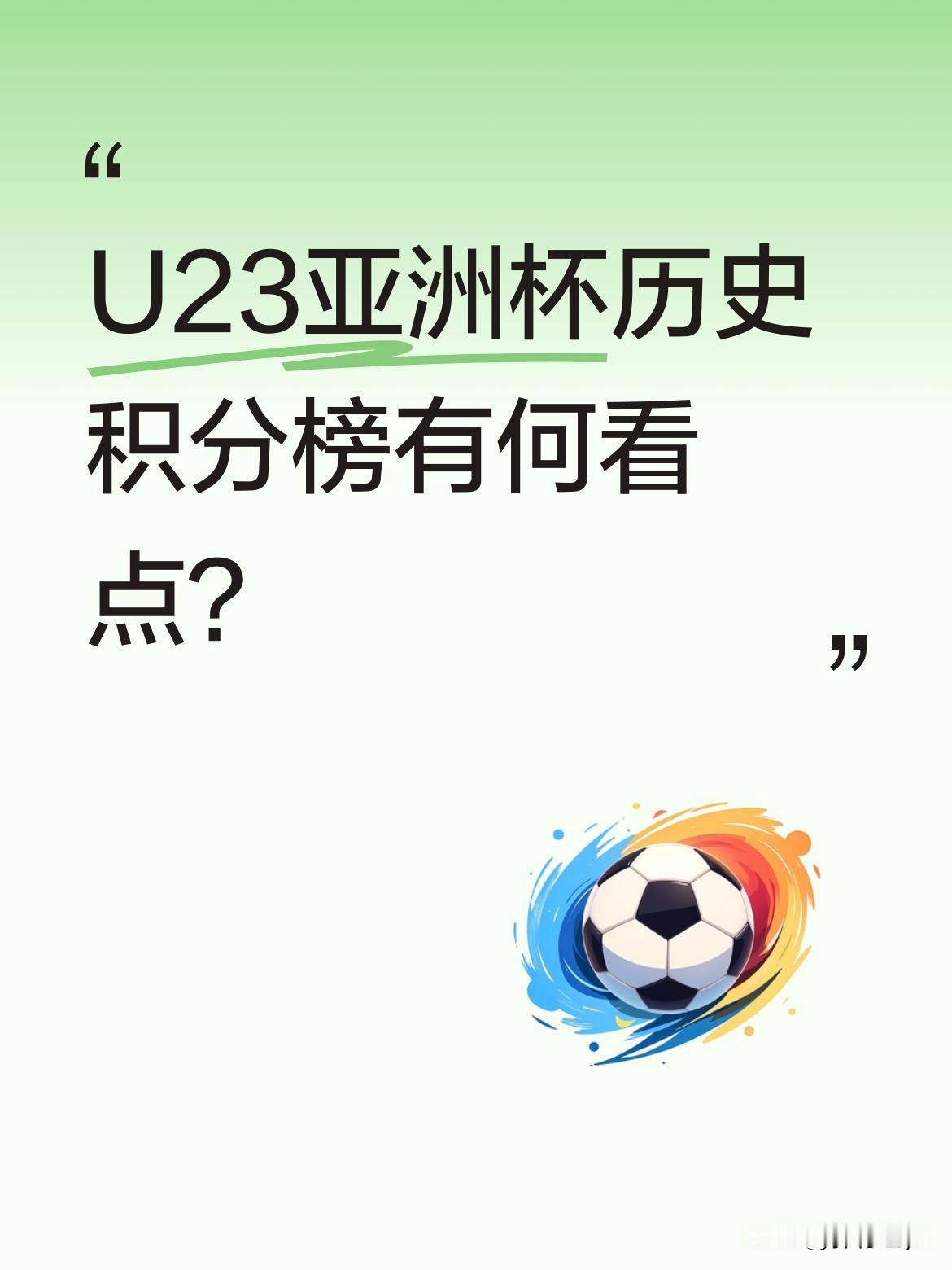 U23亚洲杯历史积分榜有何看点? 数据显示,日本以35场24胜积77分位居榜首,胜率68.57%,3次夺冠;韩国27场18胜积62分紧随其后,3次夺冠;乌兹别克斯坦52场34胜积119分排名第三。 亚洲足坛格局可见一斑,传统强队持续领跑。中国21场4胜积15分排名第14,胜率19.05%。你怎么看这份榜单?