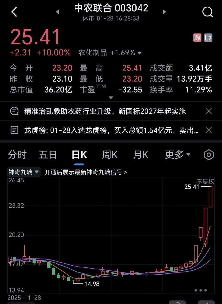 一直没想明白,业绩那么拉胯的,走势却如此漂亮? 中农联合已经连续拉了四个涨停了,眼睁睁看着它上涨,就是不敢买! 有时炒股就是如此神奇,你越不敢买,人家涨的让你怀疑人生,一旦你进入了,人家就跌的你怀疑人生。中农博士 中农联合股票 中农集团 中农科技