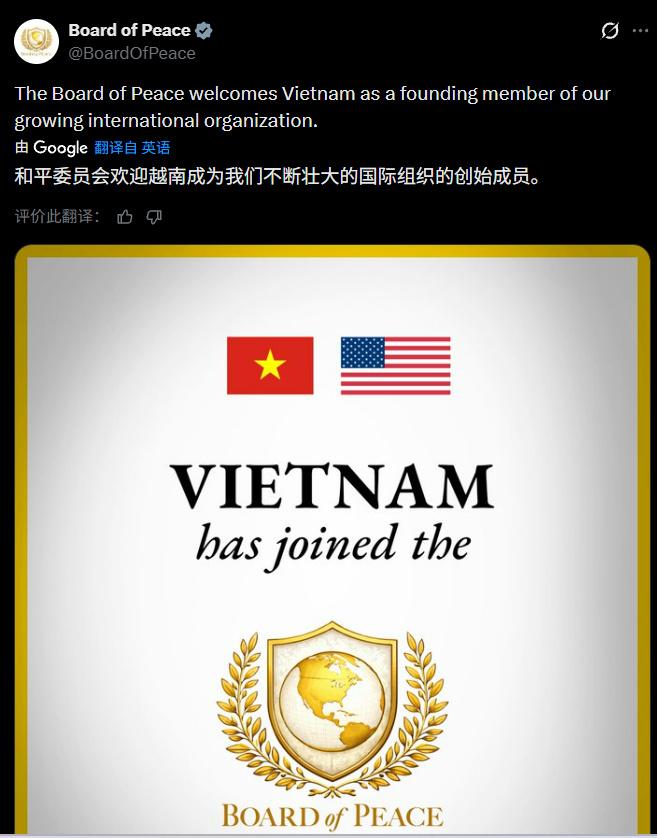 越南加入特朗普发起的“和平委员会”。国家小,得取悦特朗普,理解。 只是,这张图上的越南国旗怎么比美国国旗看上去小一号?[捂脸][捂脸]