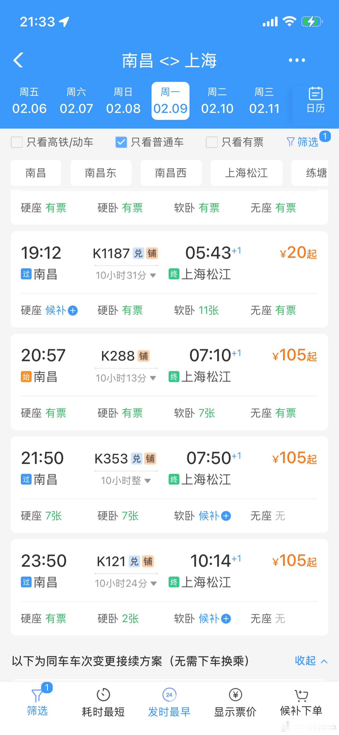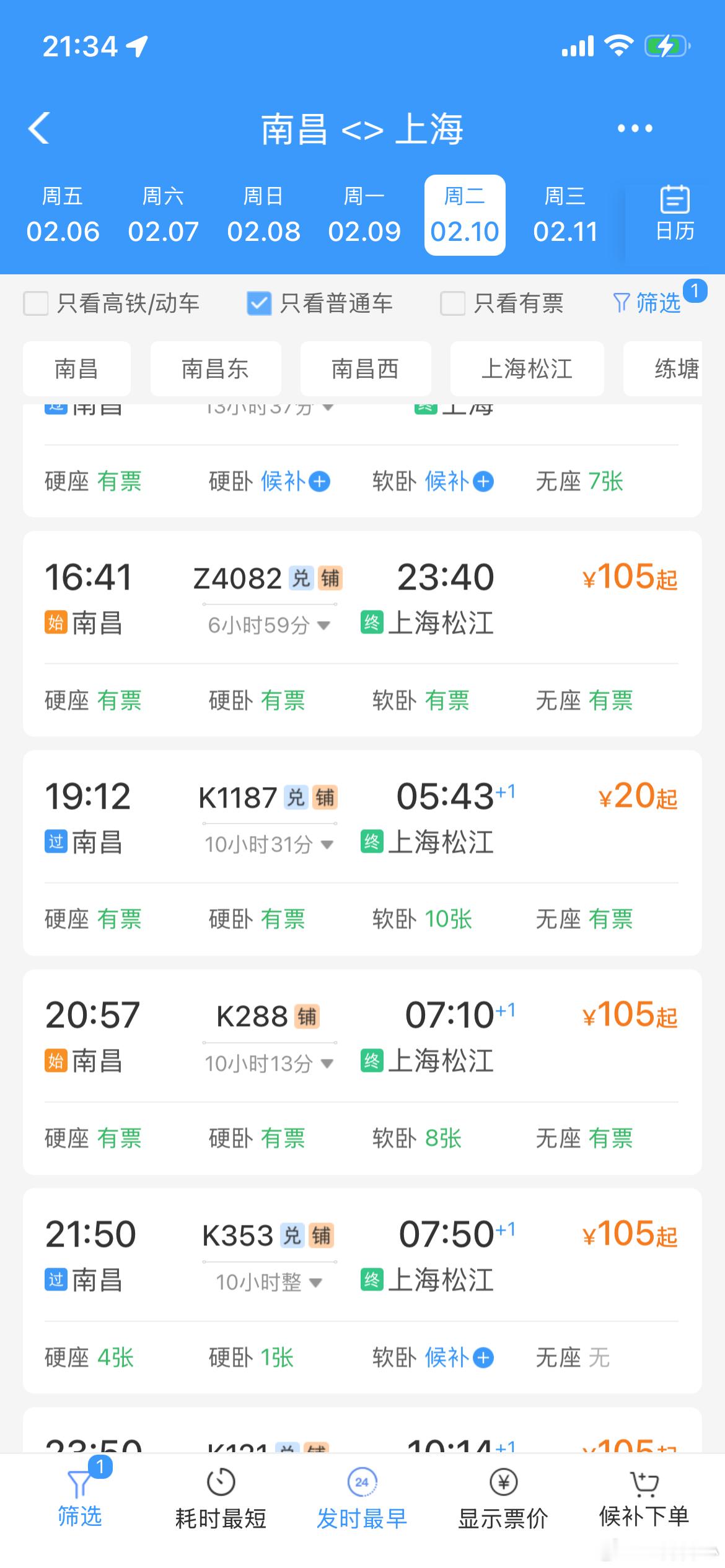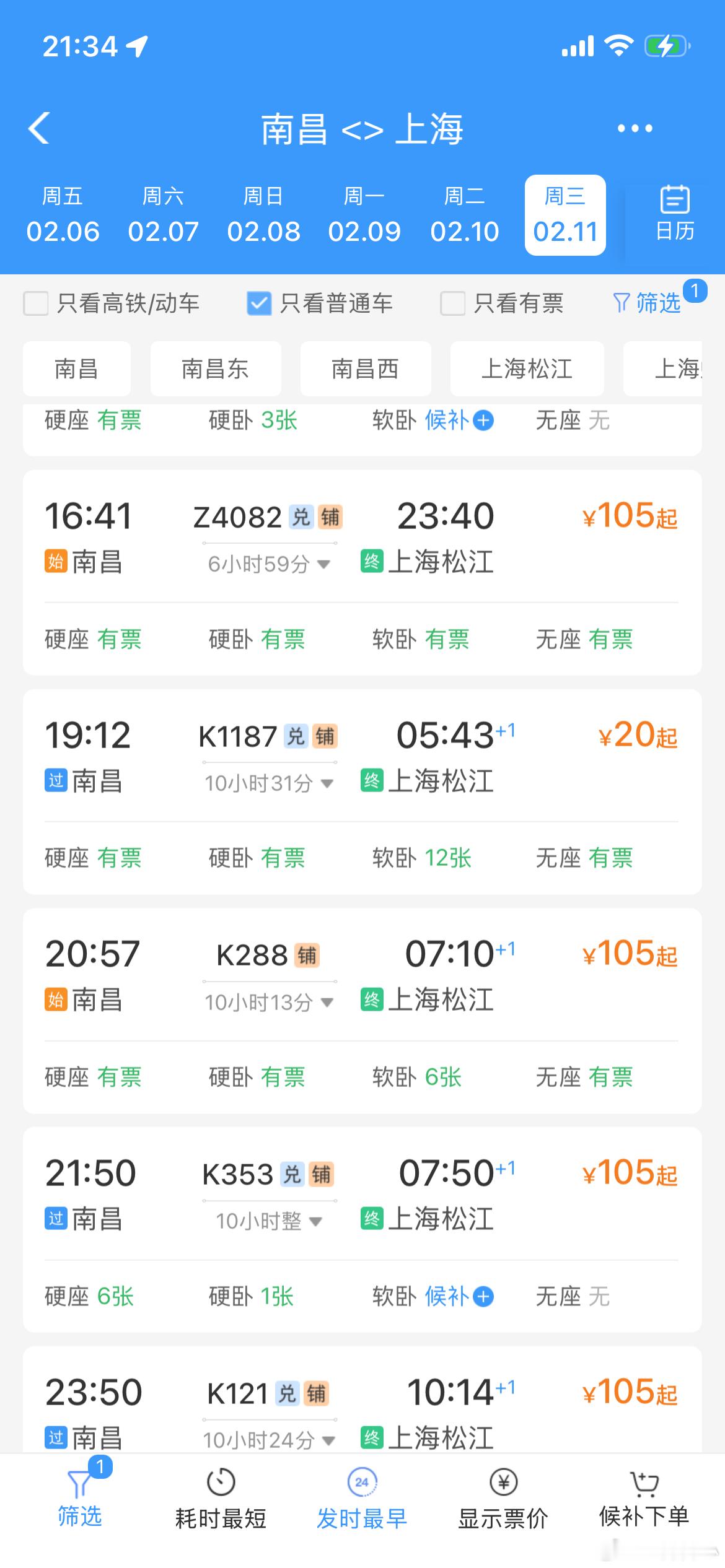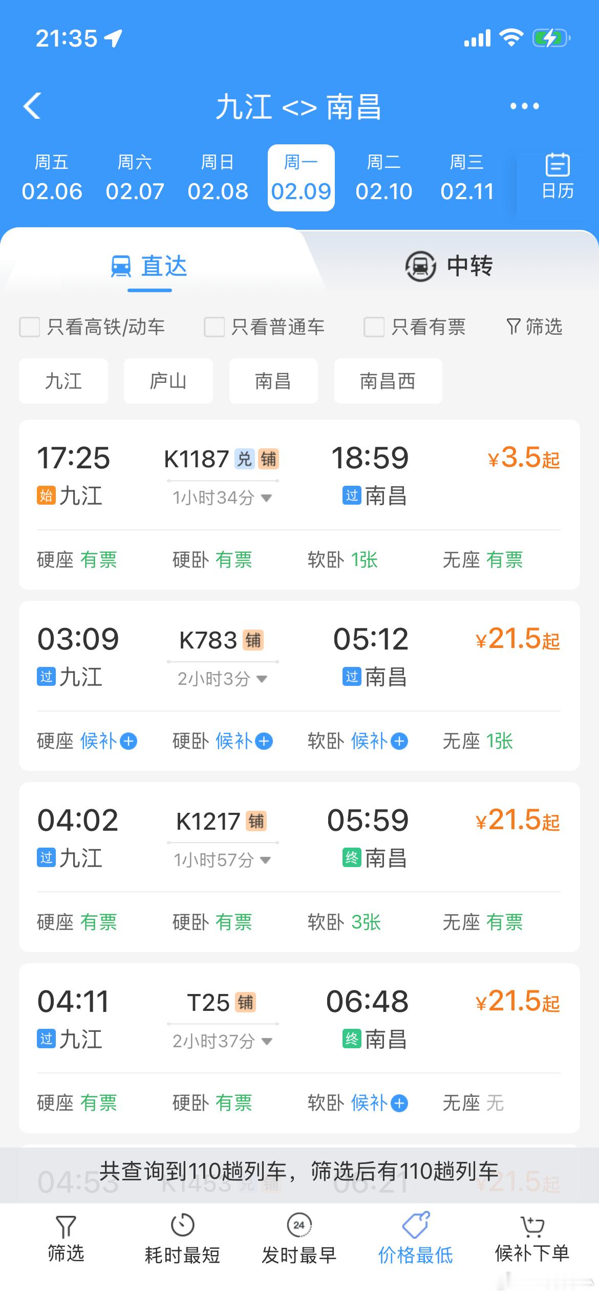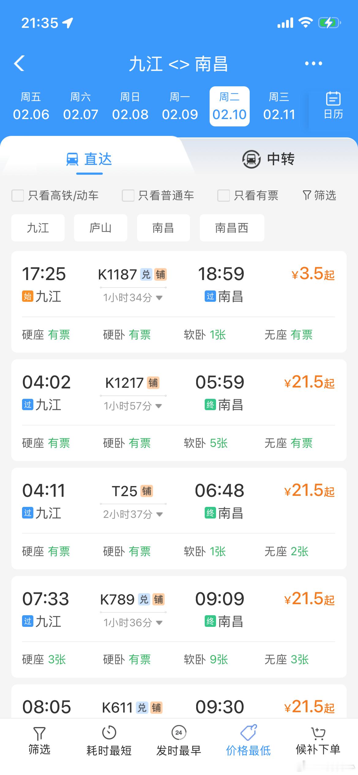 看到特价票了真便宜2月9日到11日,九江到南昌最低3.5元南昌到上海松江20元