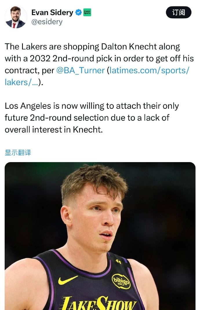 湖人记者爆料:湖人队正在兜售克内克特,并且愿意搭上一个2032年次轮签,目的就是