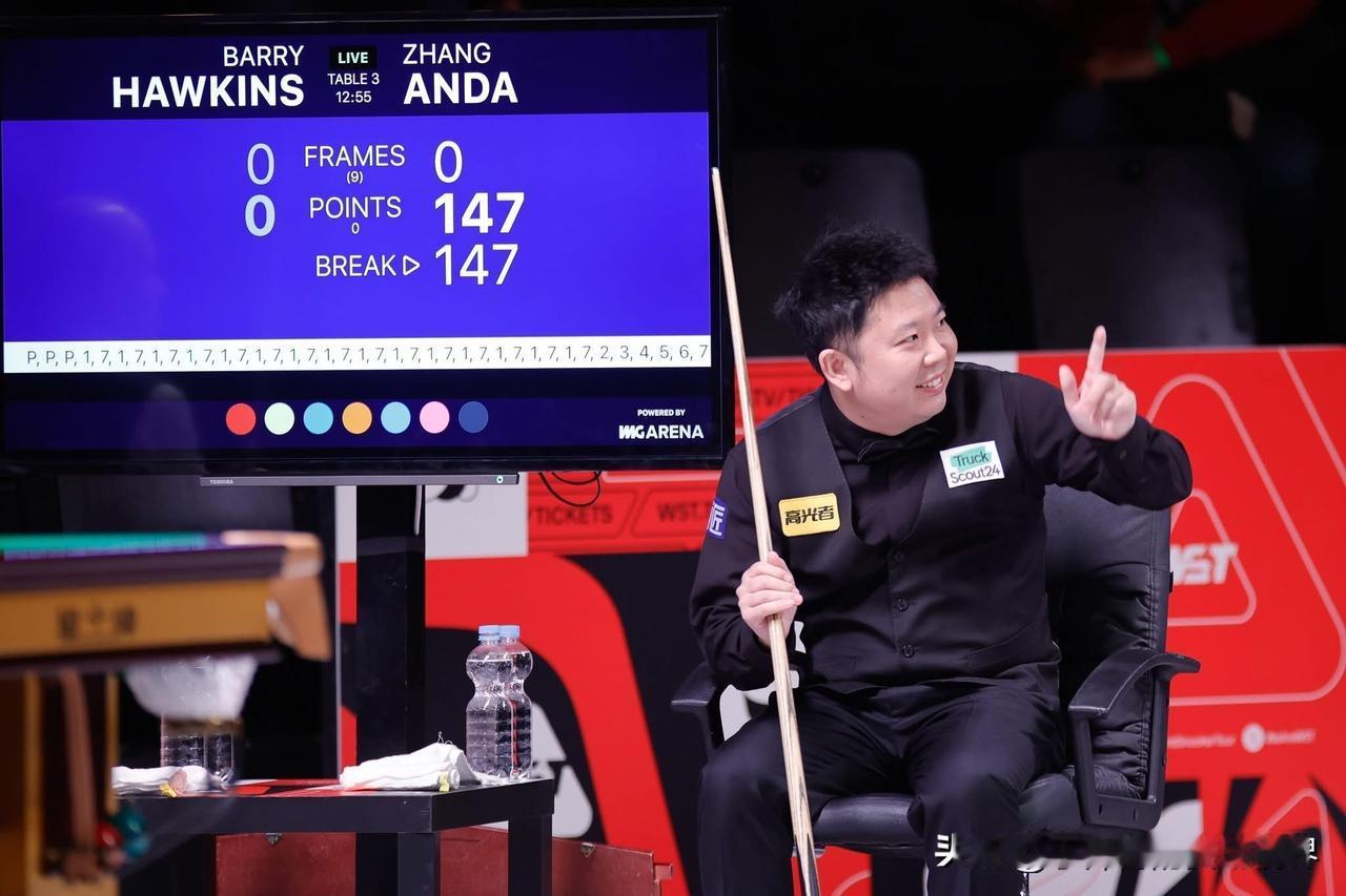 不到一个星期再有中国球手打出单杆147! 张安达在德国大师赛第二轮比赛中开局惊艳,首局轰出满分147分,最终以5-2击败去年的亚军巴里·霍金斯。 这是本赛季的第22个满分杆,最近的连续四杆都由中国球手打出(较早前冠军联赛肖国栋、吴宜泽和赵心童) 这位前国际锦标赛冠军也迎来职业生涯的第5个满分杆,在中国球手里面,追平了香港名将傅家俊,两人并列第二,仅次于7杆的丁俊晖。 同时这位1991年出生的大器晚成的球手由此跻身历史排名,与尼尔·罗伯逊、马克·艾伦和凯伦·威尔逊等顶尖高手并肩。
