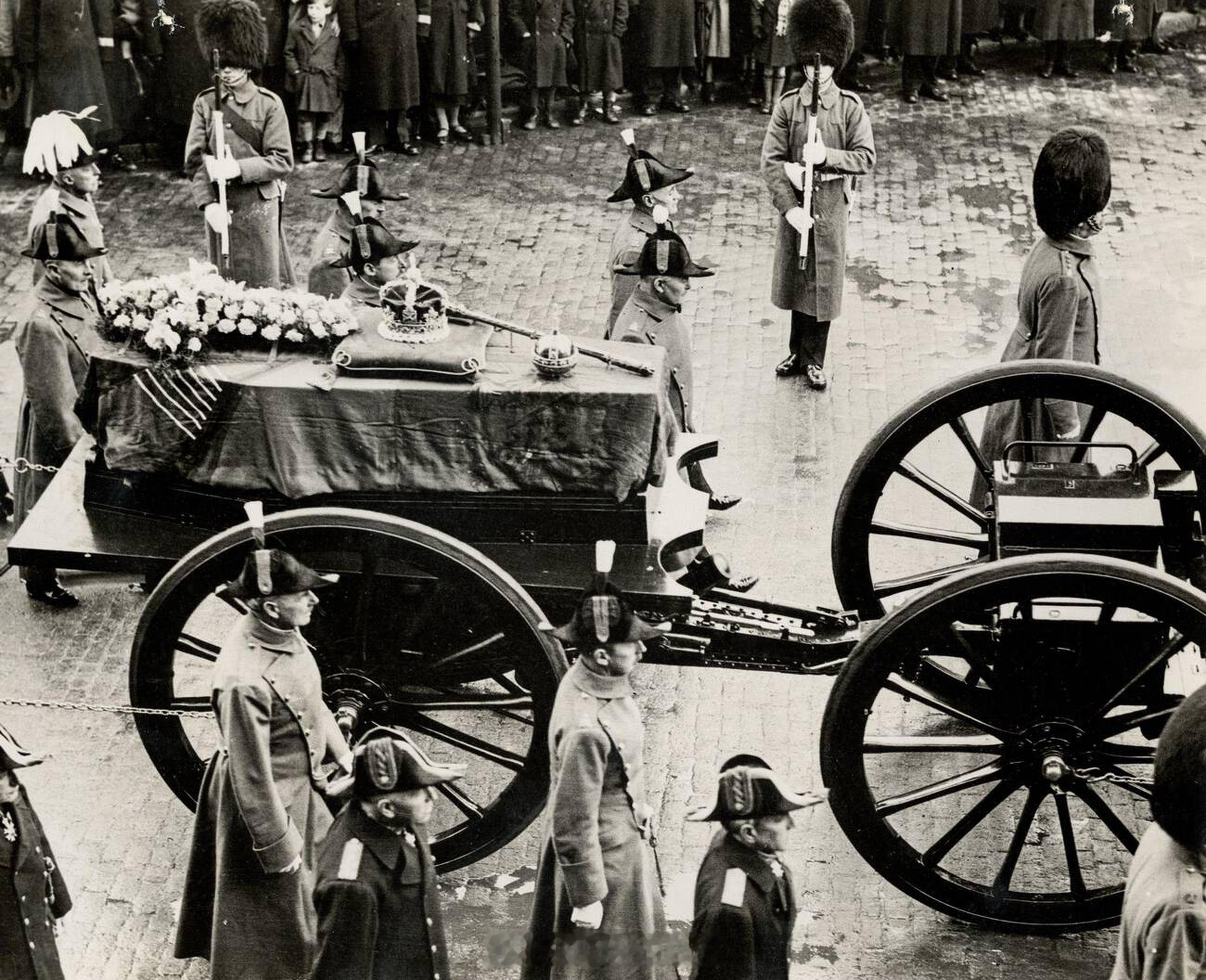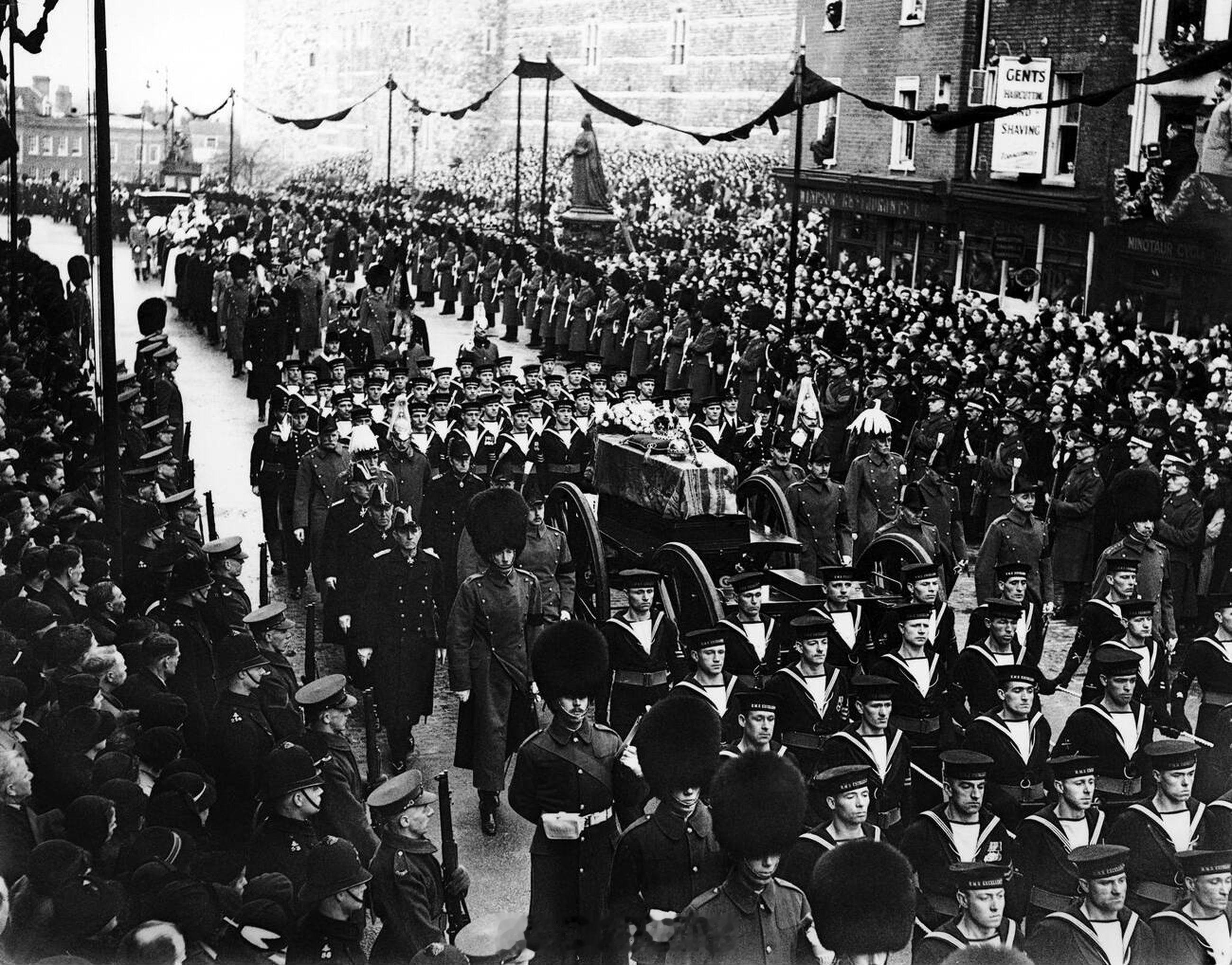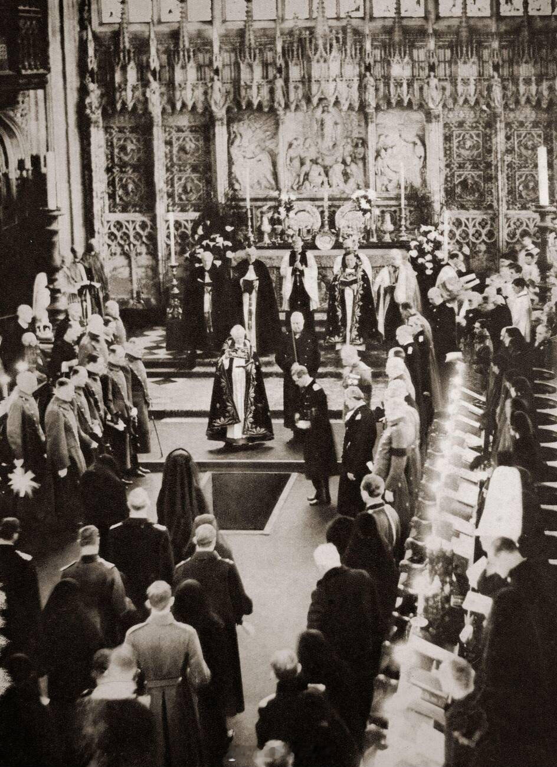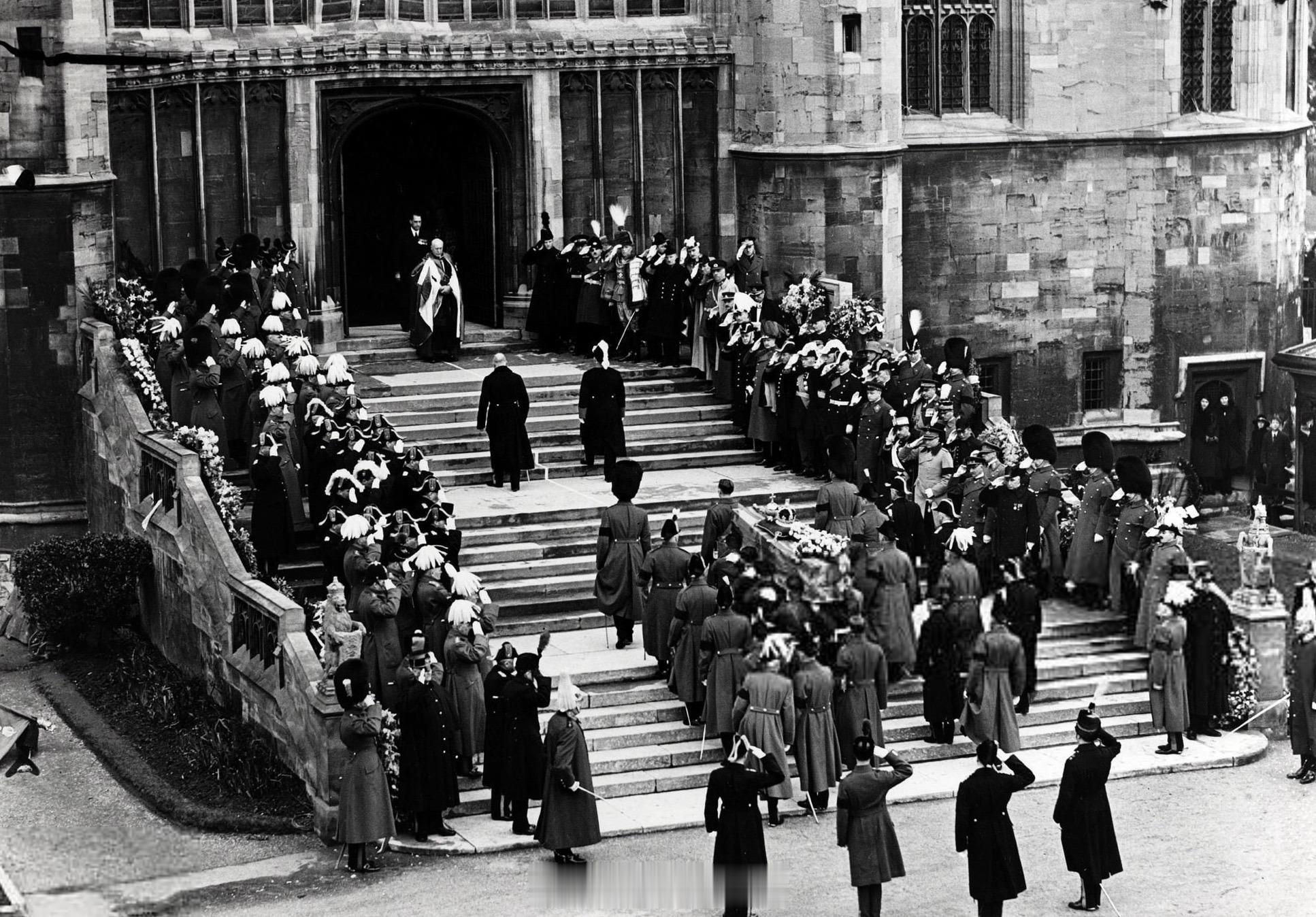 英国王室 9️⃣0️⃣年前的今天1936年1月28日,乔治五世的国葬在温莎城堡圣乔治礼堂举行。📍小故事:1936年1月23日,乔治五世的灵柩被人从伦敦十字火车站拉至威斯敏斯特宫期间,放在乔治五世的灵柩上的帝国冠,据说帝国冠上的十字架在运送期间不慎掉了下来,爱德华八世听说之后的反应就是:天呐!接下来会发生什么事?会发生什么?三王之年,爱八他老人家退位呗