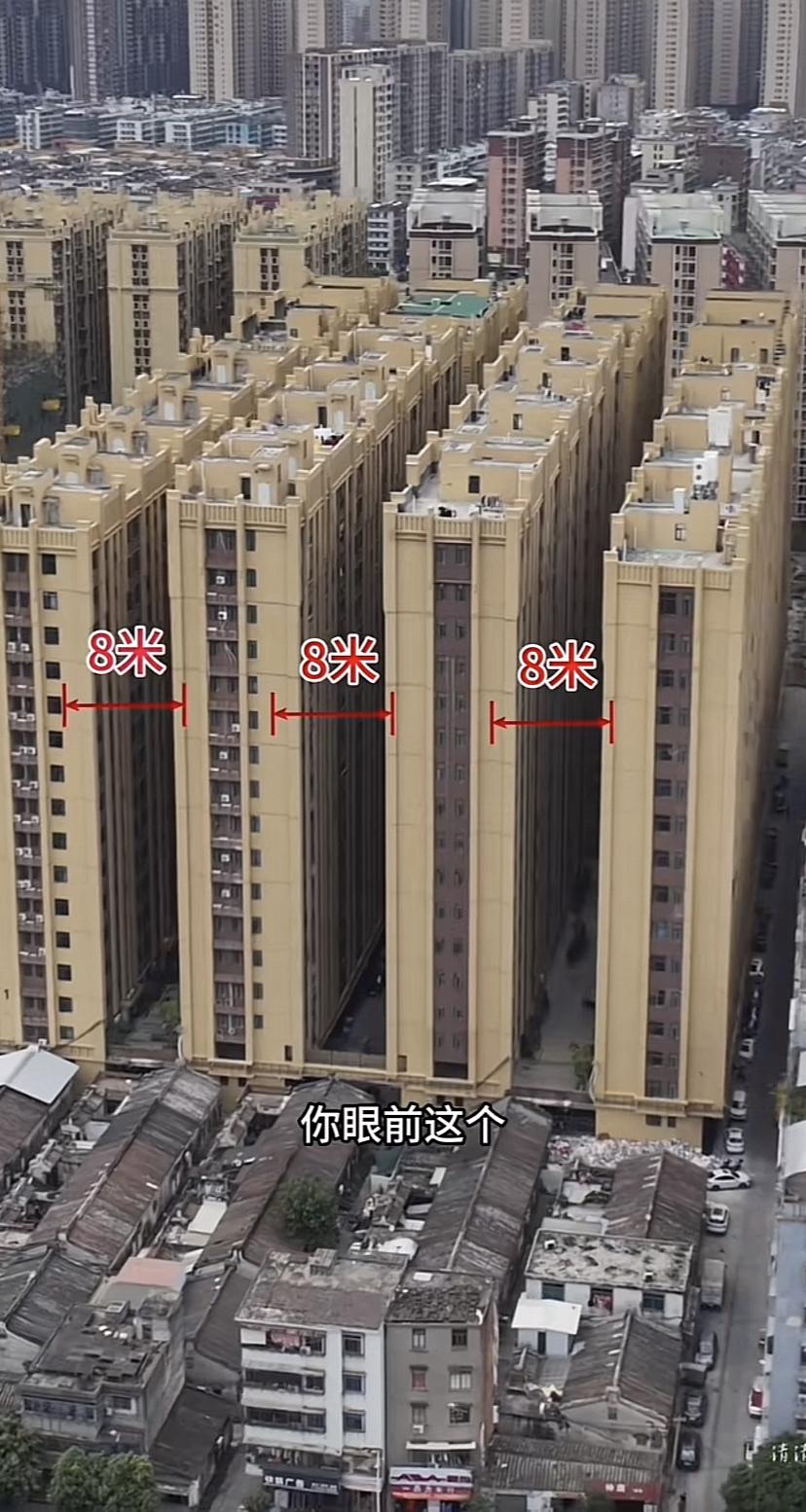 全国间距最窄的小区还叫做阳光城,间距只有八九米! 这个地方就是广东省普宁市,这也是广东人数最多的县级市。由于人口特别的多,发明了如此离谱的房屋。实际上该地区不止这一个小区间距这么小,从图上也可以看到,其他小区也是这么窄的间距。 很明显,该建筑的设计不符合采光与防火规范,不知道为什么当地会采用如此窄的间距来建设房屋。 各位是怎么看的?欢迎评论区留言。