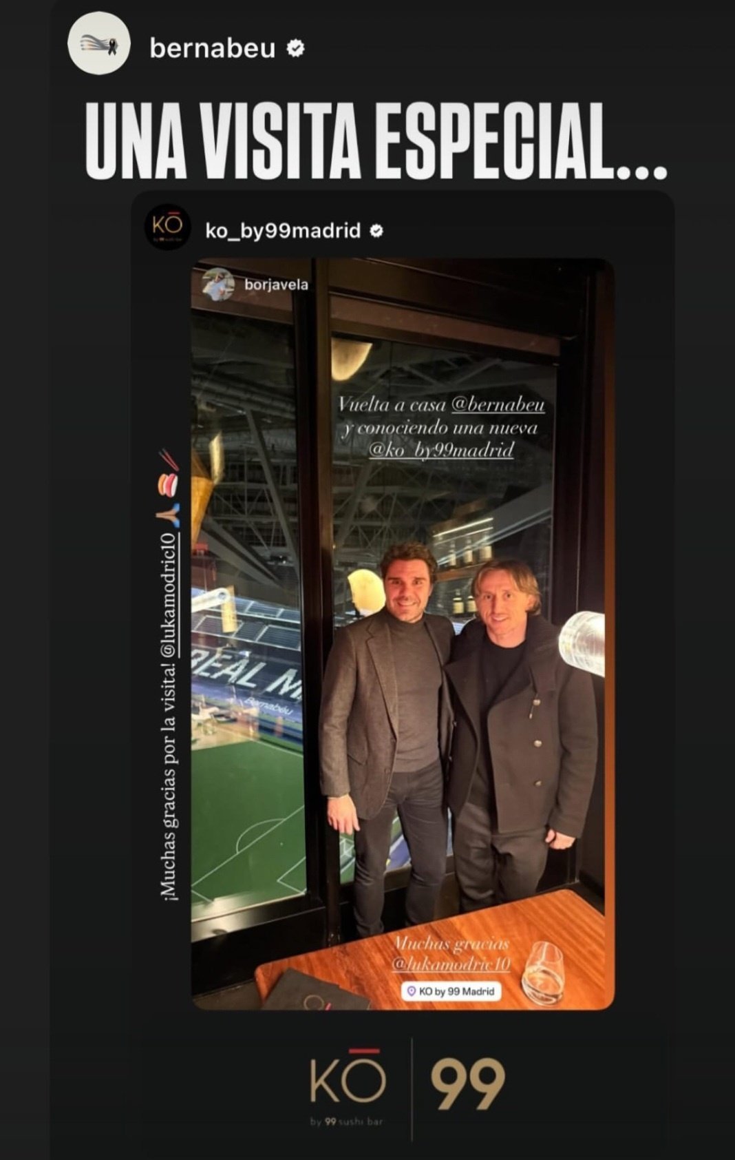 莫德里奇昨日回到了伯纳乌,并在伯纳乌的餐厅用餐 🥹🤍